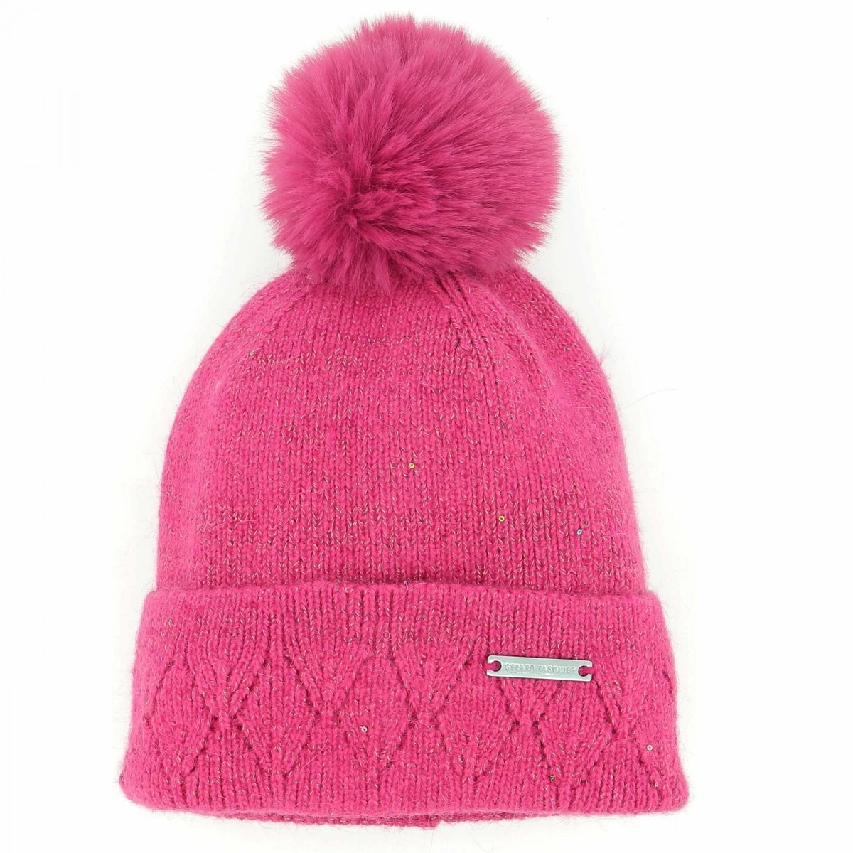 Bonnet femme Gérard PASQUIER, coloris rose vif. Bonnet avec revers et pompon, doublé polaire.