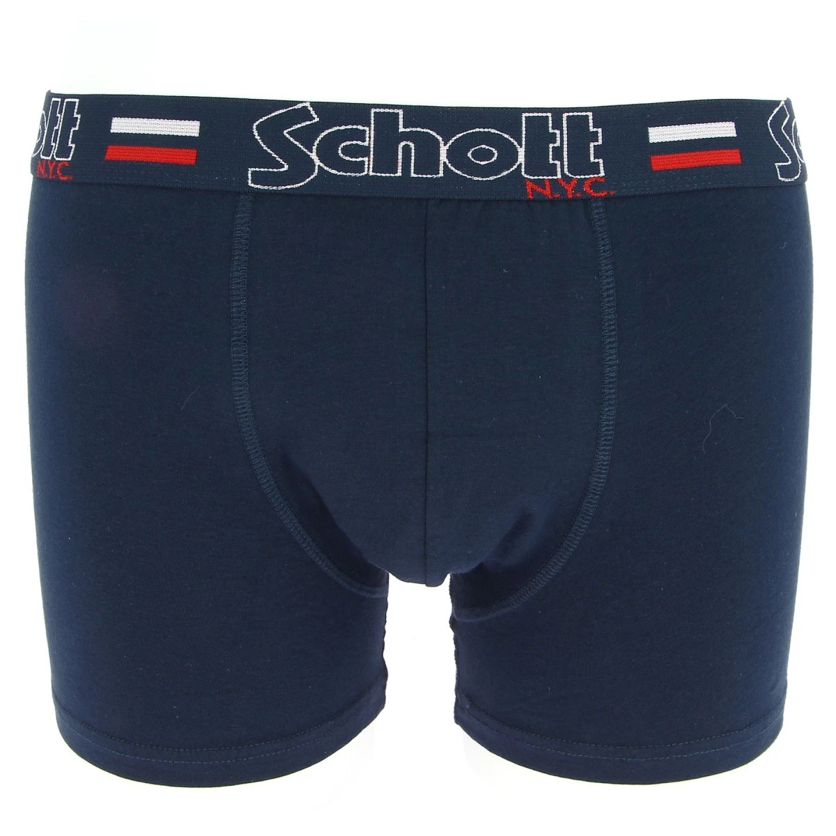 Boxer homme SCHOTT NYC, coloris marine, ceinture marine avec inscription marque. en 60% coton, doux et confortable et un maintien parfait.
