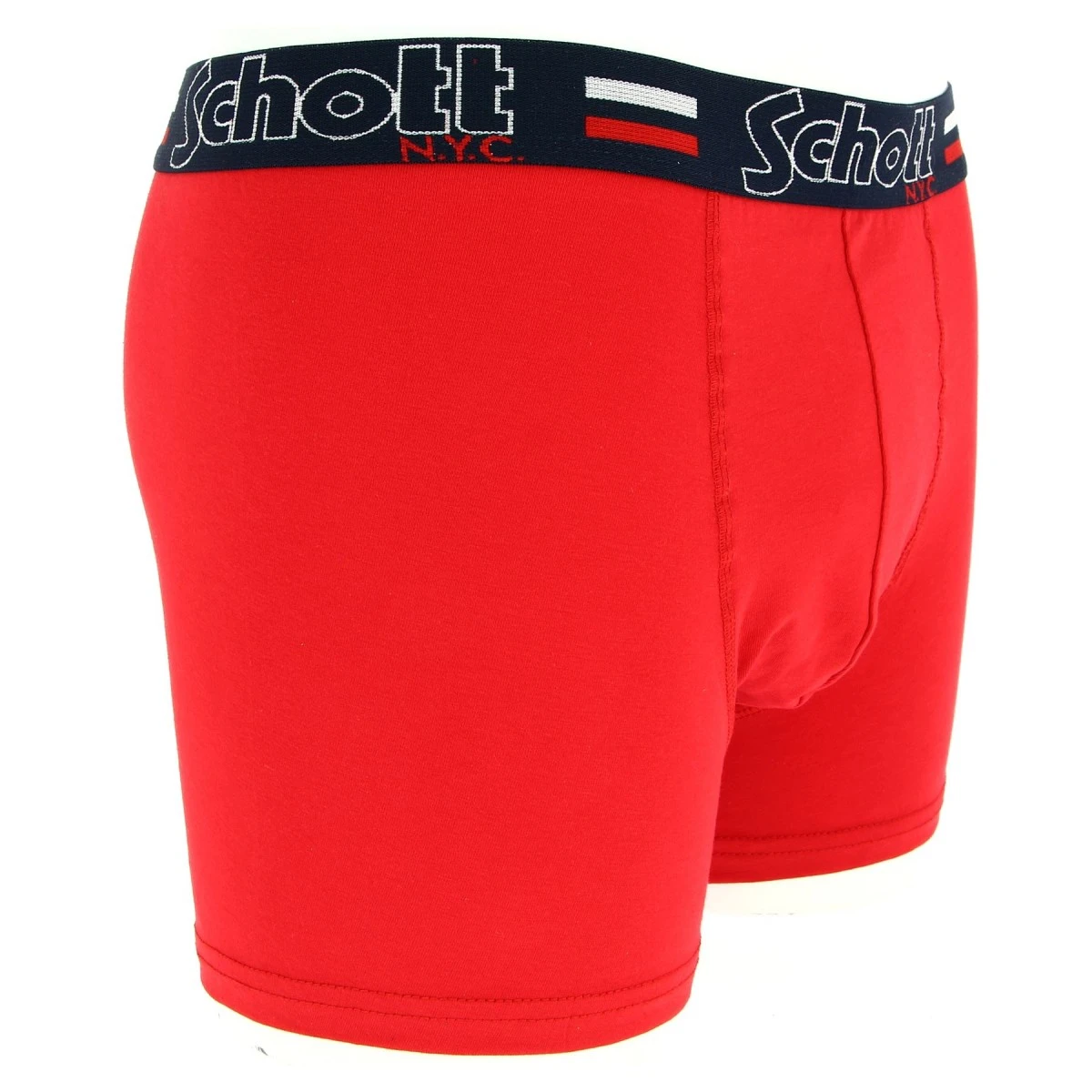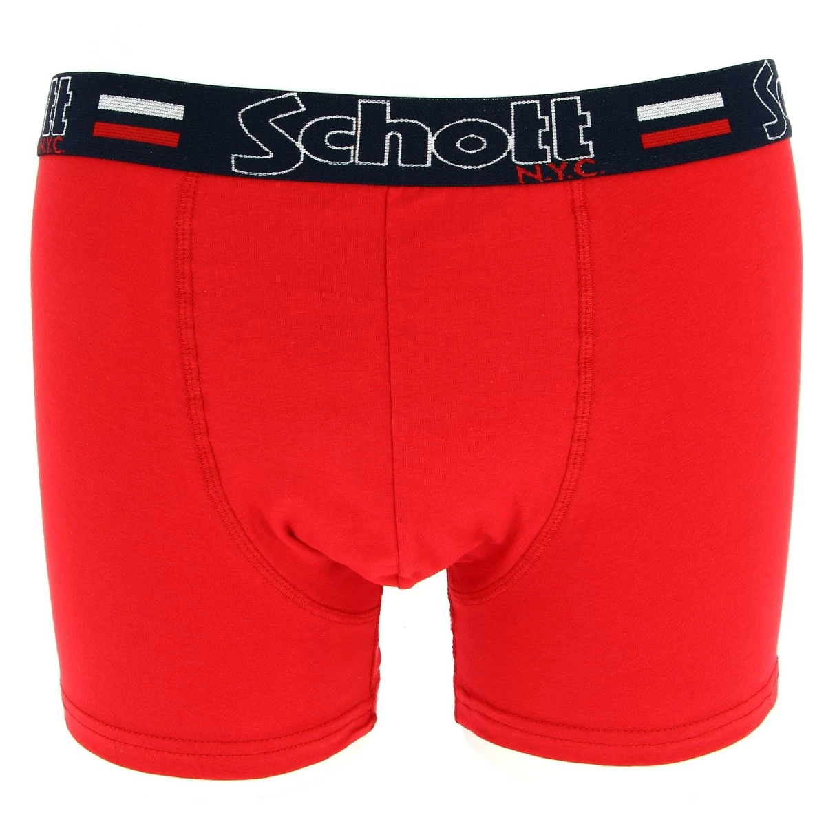Boxer homme SCHOTT NYC, coloris rouge, ceinture marine avec inscription marque. En 60% coton, doux et confortable.