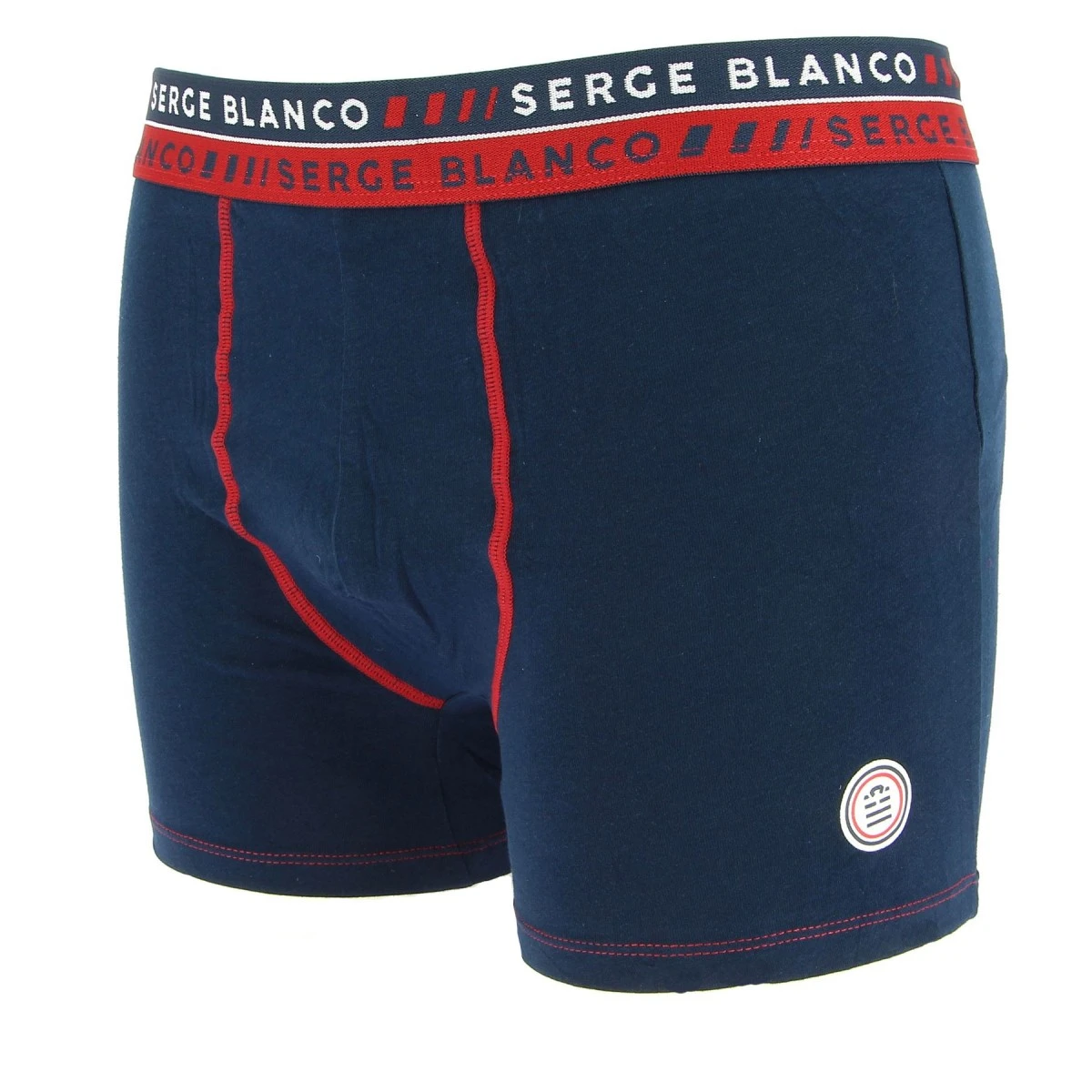 Boxer homme SERGE BLANCO, coloris marine, ceinture contrastée avec inscription marque. En 95% coton et 5% Elasthane pour un bon maintien.