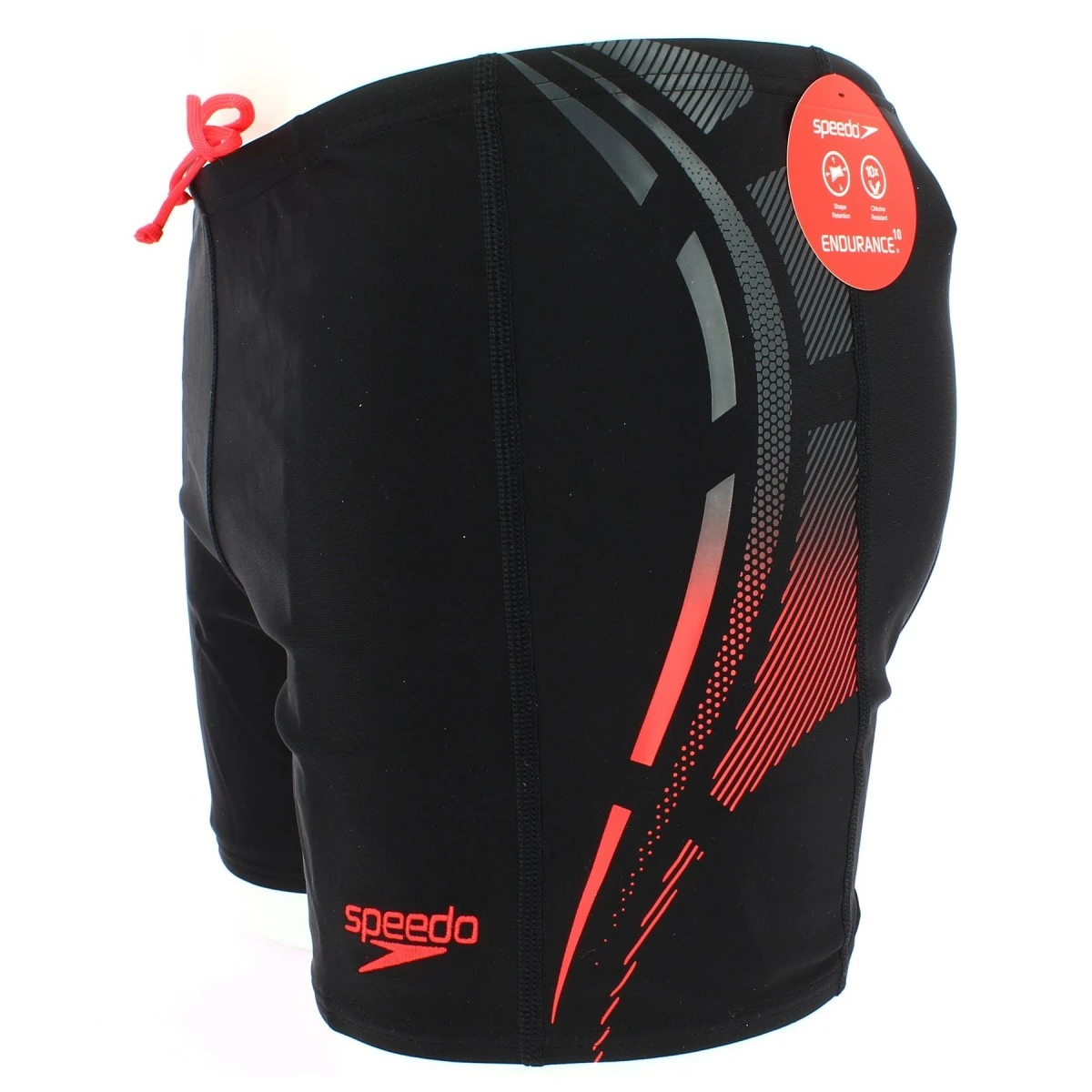 Boxer de bain homme SPEEDO noir et rouge fluo, divers coloris. Large ceinture avec cordon de serrage interne conçu pour réduire la pression et augmenter le confort.