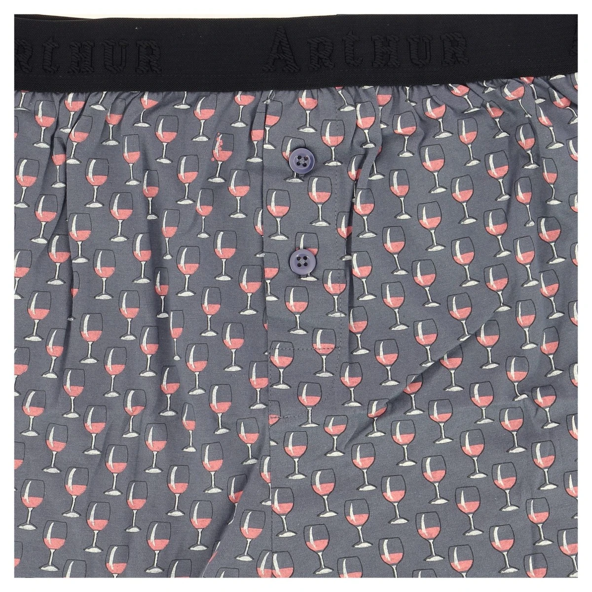 Caleçon homme ARTHUR, gris imprimé motif « verres ». En 100% coton jersey, doux et confortable. Ceinture élastiquée. Fermé par boutons. Sans suspensoir.
