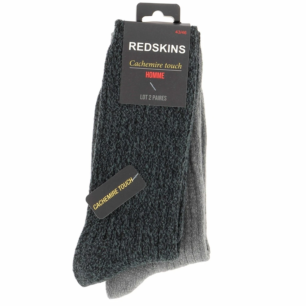 Chaussettes homme REDSKINS lot de 2 paires, coloris noir et gris chiné. En larges côtes, très confortables et très chaudes, pour affronter les températures hivernales sereinement.