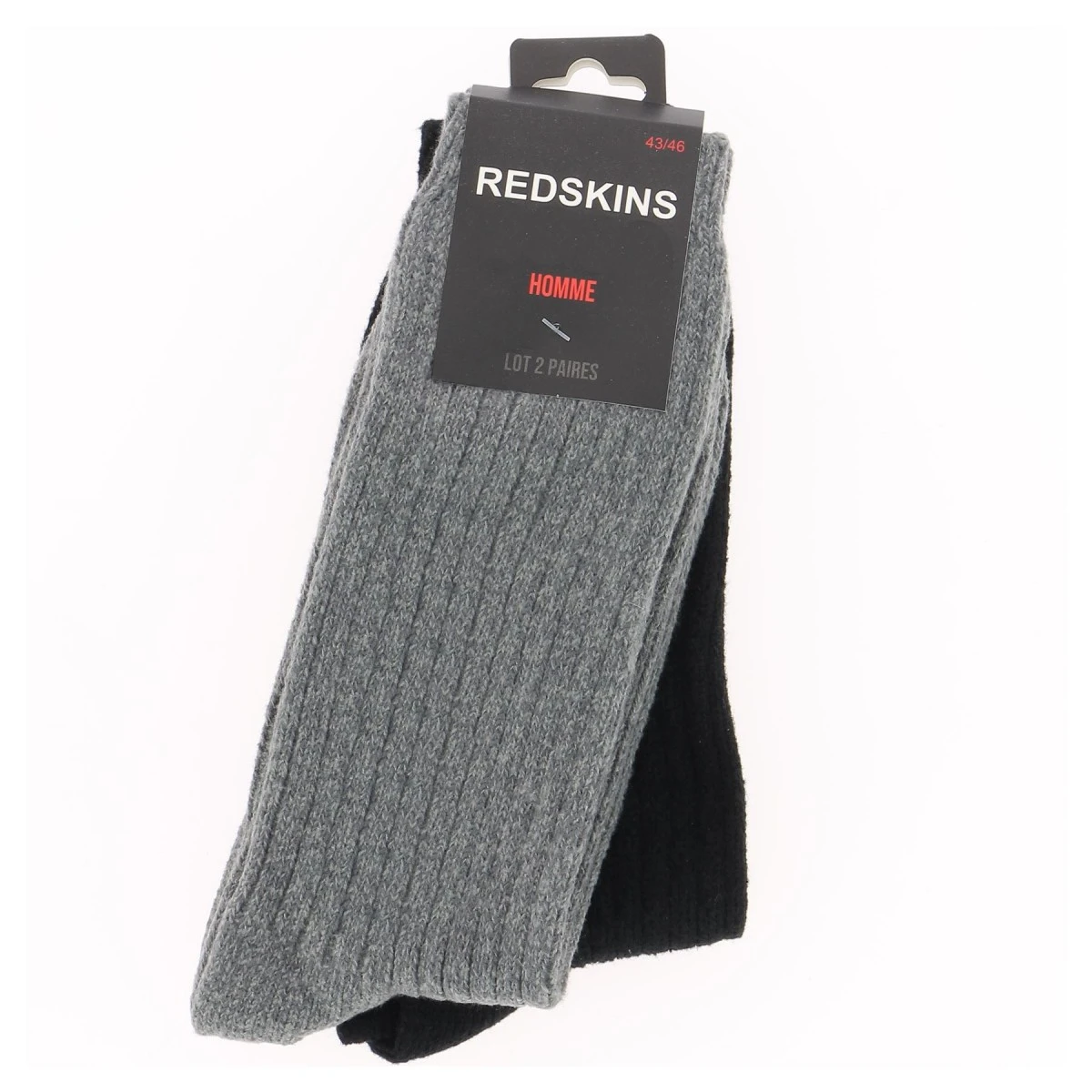 Chaussettes homme REDSKINS lot de 2 paires, coloris noir et gris chiné. En larges côtes, très confortables et très chaudes, pour affronter les températures hivernales sereinement.