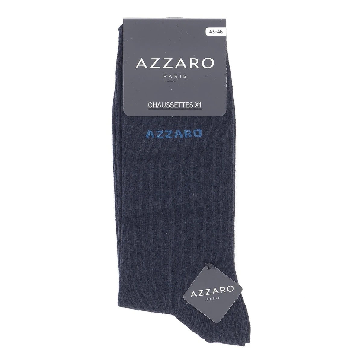 Célèbre marque de haute couture, AZZARO vous propose ici des chaussettes mi- hautes pour homme, couleurs : gris/anthracite/marine avec inscription marque.