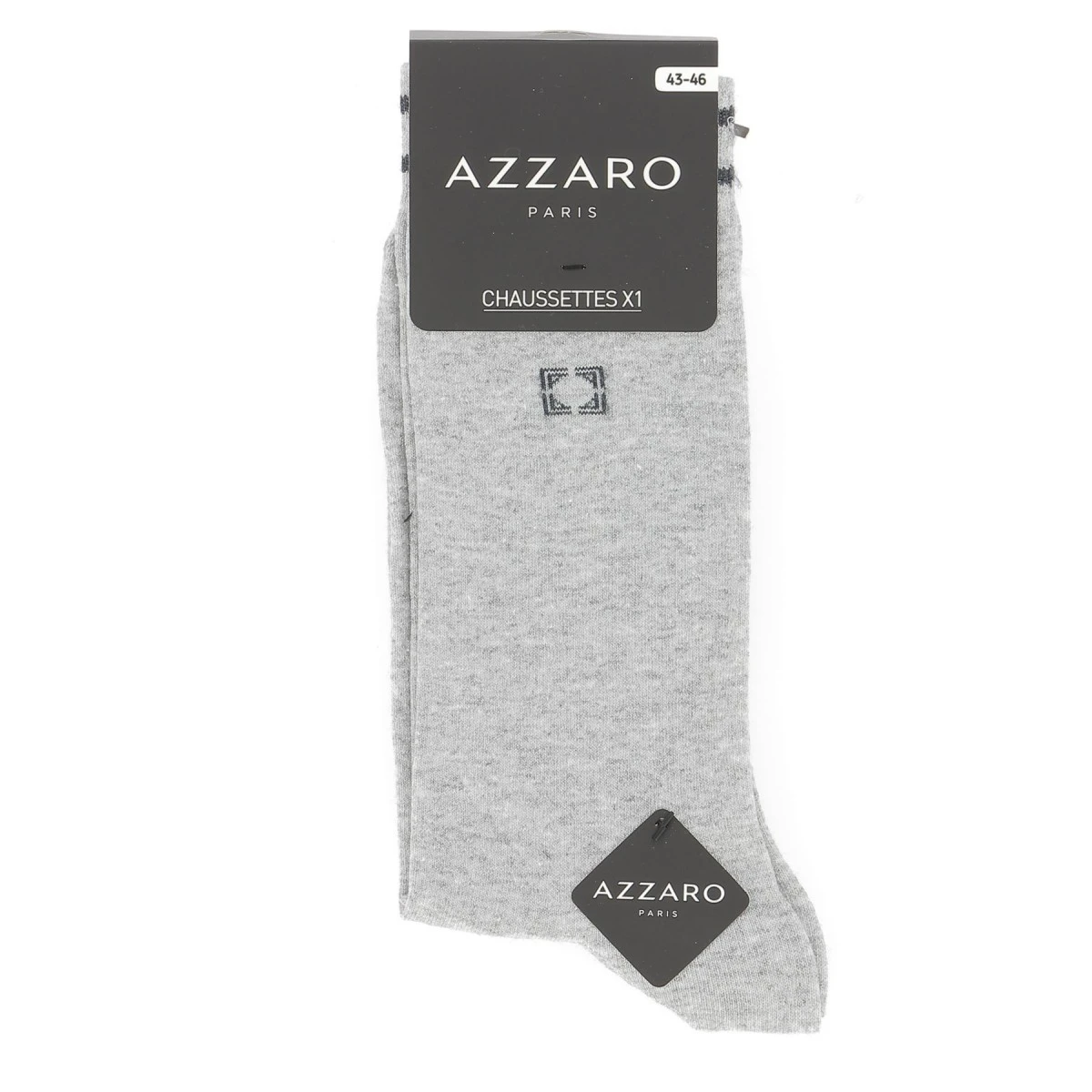 Célèbre marque de haute couture, AZZARO vous propose ici des chaussettes mi- hautes pour homme, couleurs : gris/noir/marine avec petit logo.