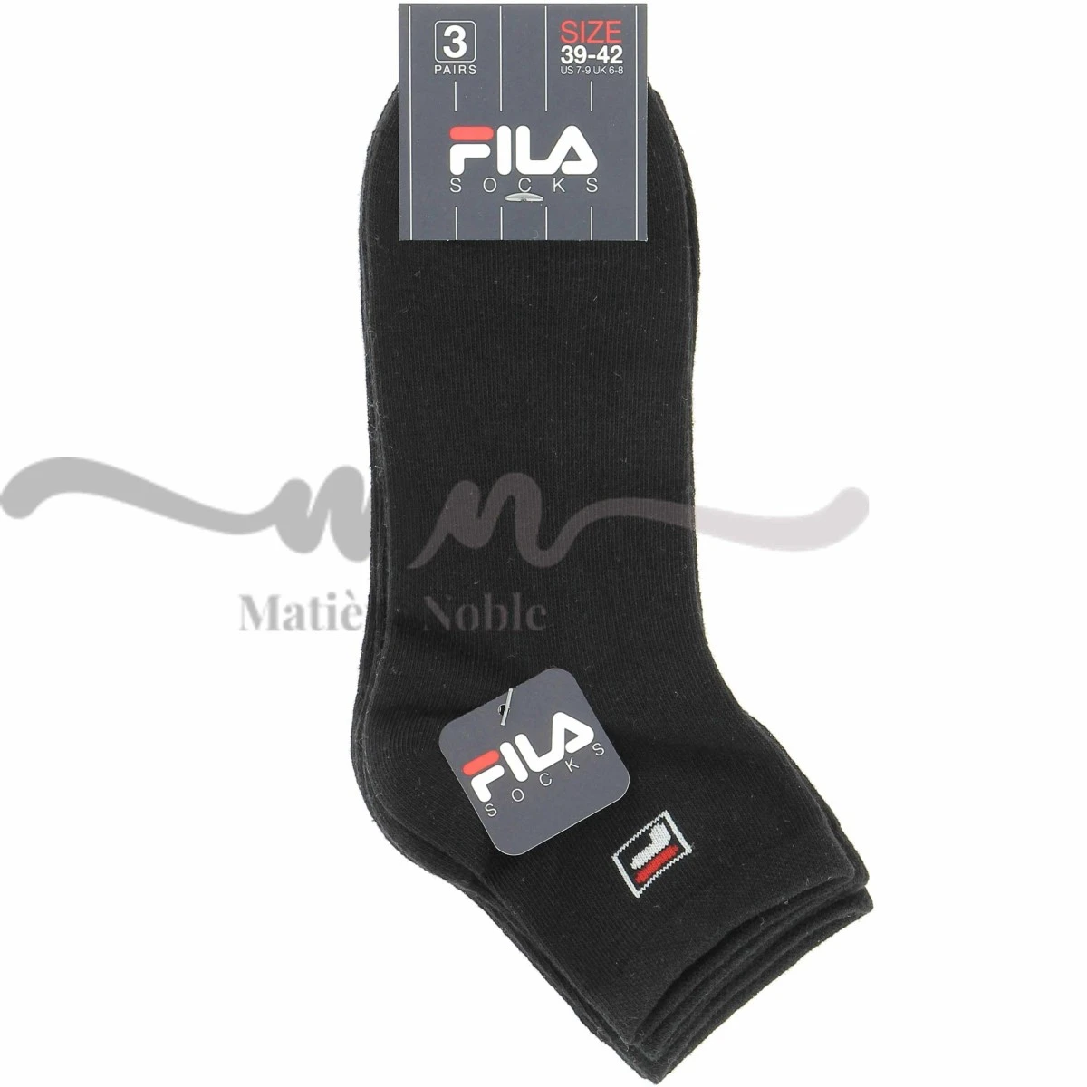 Lot de 3 paires de chaussettes FILA noires unisexe ; respirantes et confortables.