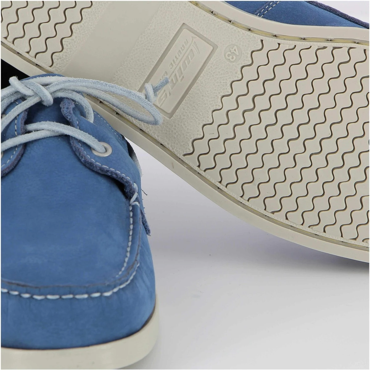 Chaussure bateau en cuir velours, coloris bleu jean ; elle est un grand classique du dressing masculin. Reconnaissable à son lacet en cuir sur les côtés et à ses coutures apparentes, elle est à la fois décontractée et très chic. Un modèle incontournable et totalement indémodable pour les amateurs de voile ou tout simplement pour agrémenter une tenue détente, en jean ou bermuda. Semelle en gomme, très confortable.