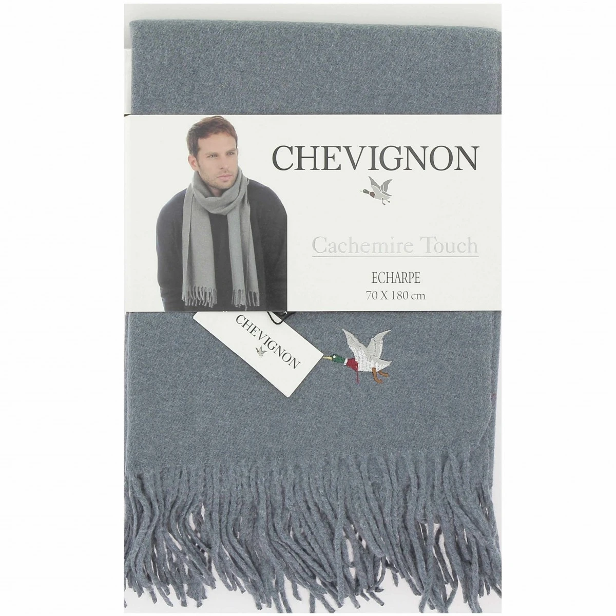 Echarpe homme CHEVIGNON, coloris gris, toucher cachemire, pour une douceur extrême et un confort idéal pour traverser l’hiver sans soucis.