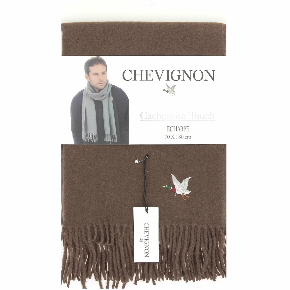 Echarpe homme CHEVIGNON, coloris marron, toucher cachemire, pour une douceur extrême et un confort idéal pour traverser l’hiver sans soucis.