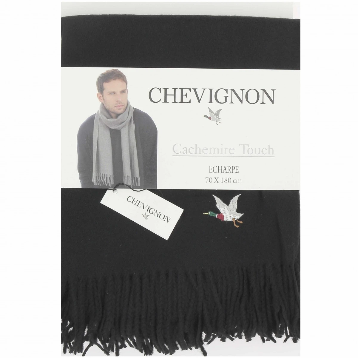 Echarpe homme CHEVIGNON, coloris noir, toucher cachemire, pour une douceur extrême et un confort idéal pour traverser l’hiver sans soucis.