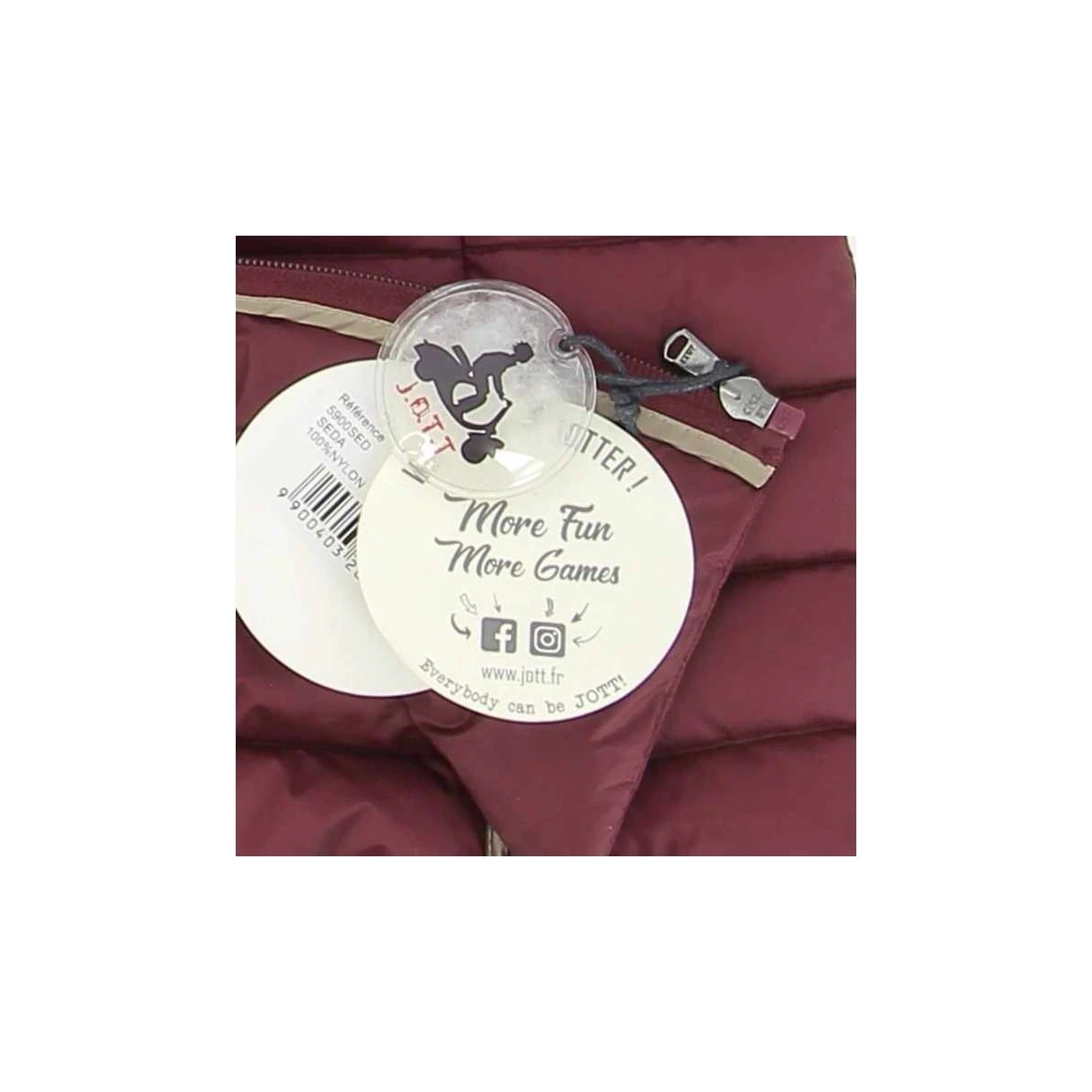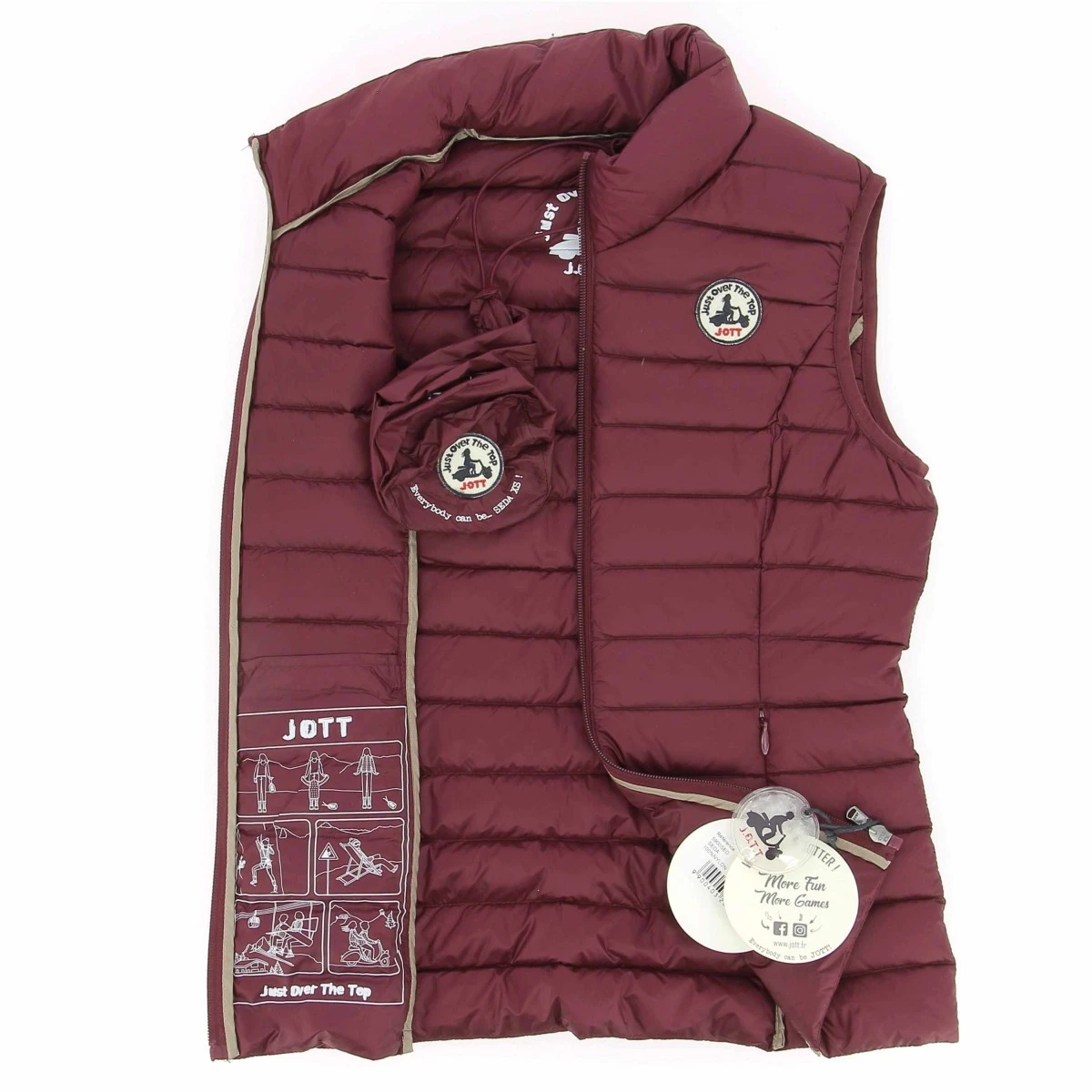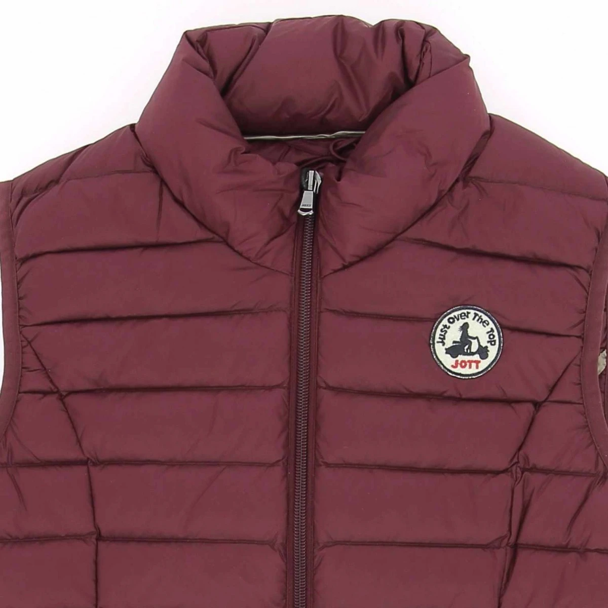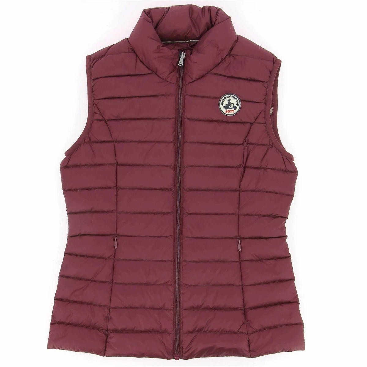Doudoune sans manche JOTT, modèle Seda, coloris aubergine, col montant, fermeture zippée, 2 poches zippées latérales invisibles.