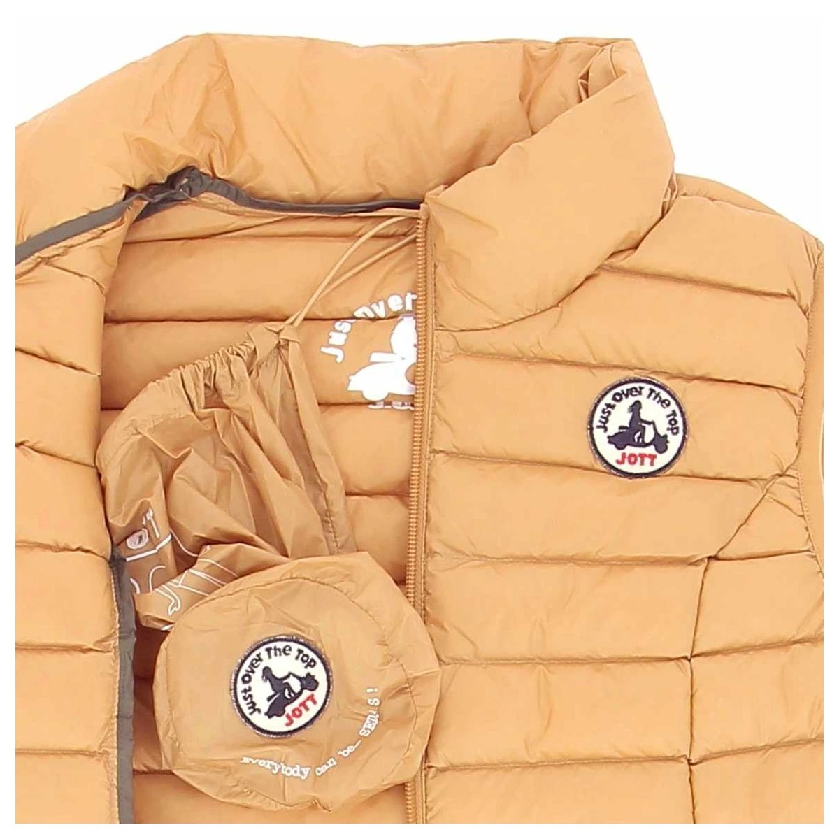 Doudoune sans manche JOTT, modèle Seda, coloris bronze, col montant, fermeture zippée, 2 poches zippées latérales invisibles.