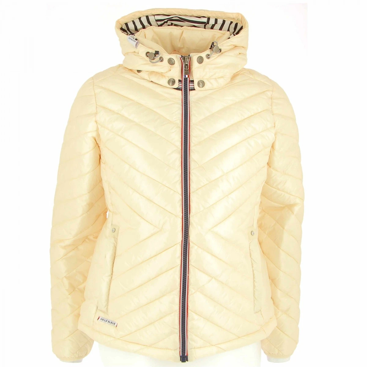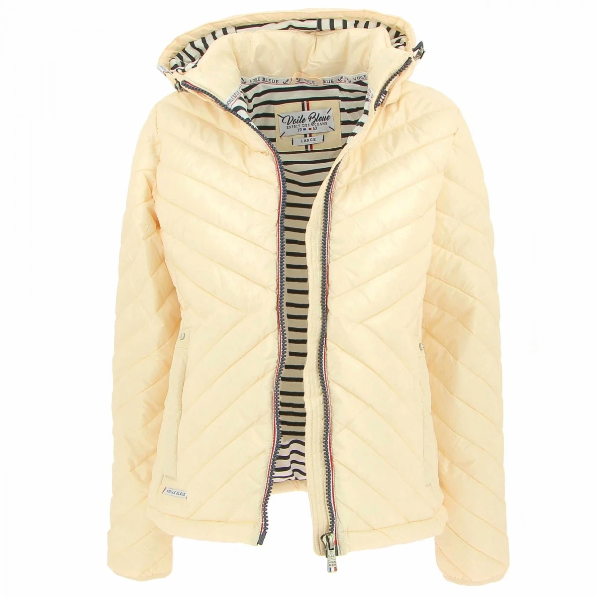 Doudoune femme VOILE BLEUE, coloris champagne. Entièrement zippée avec liseré rouge et blanc tout au long de la fermeture éclair.