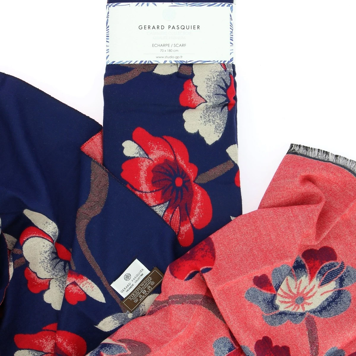 Magnifique étole femme réversible avec motifs floraux , coloris marine et rouge . Un toucher extrêmement doux et un confort assuré grâce à des dimensions généreuses.