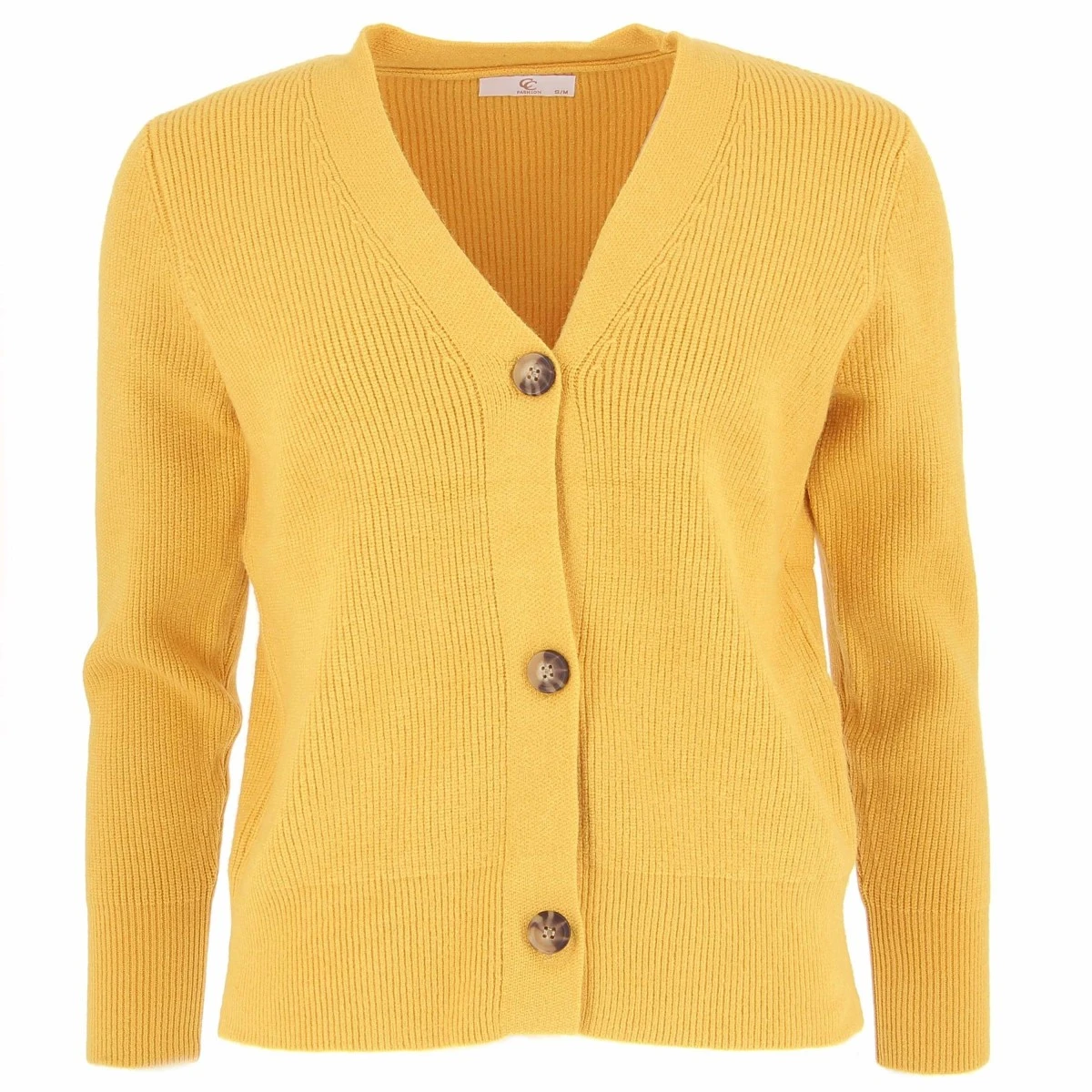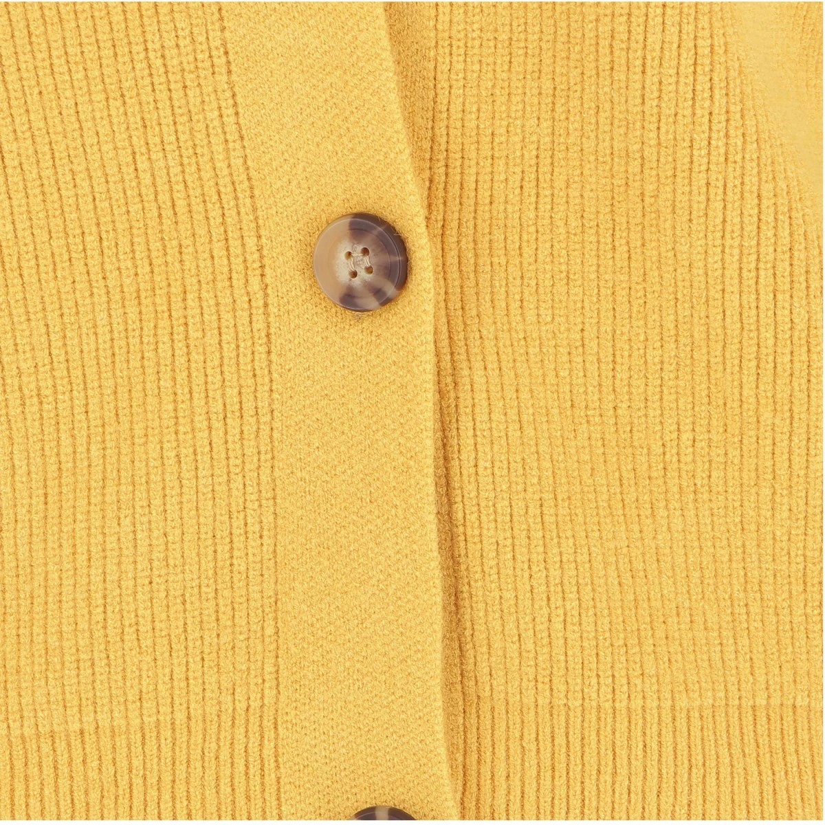 Cardigan femme, modèle Bari, coloris jaune. Col V, boutonné.