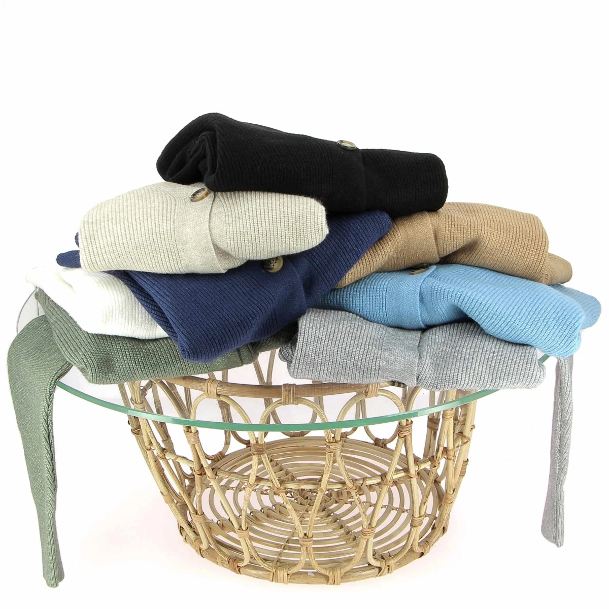 Une maille côtelée, très douce avec finitions base et poignets côtelées.