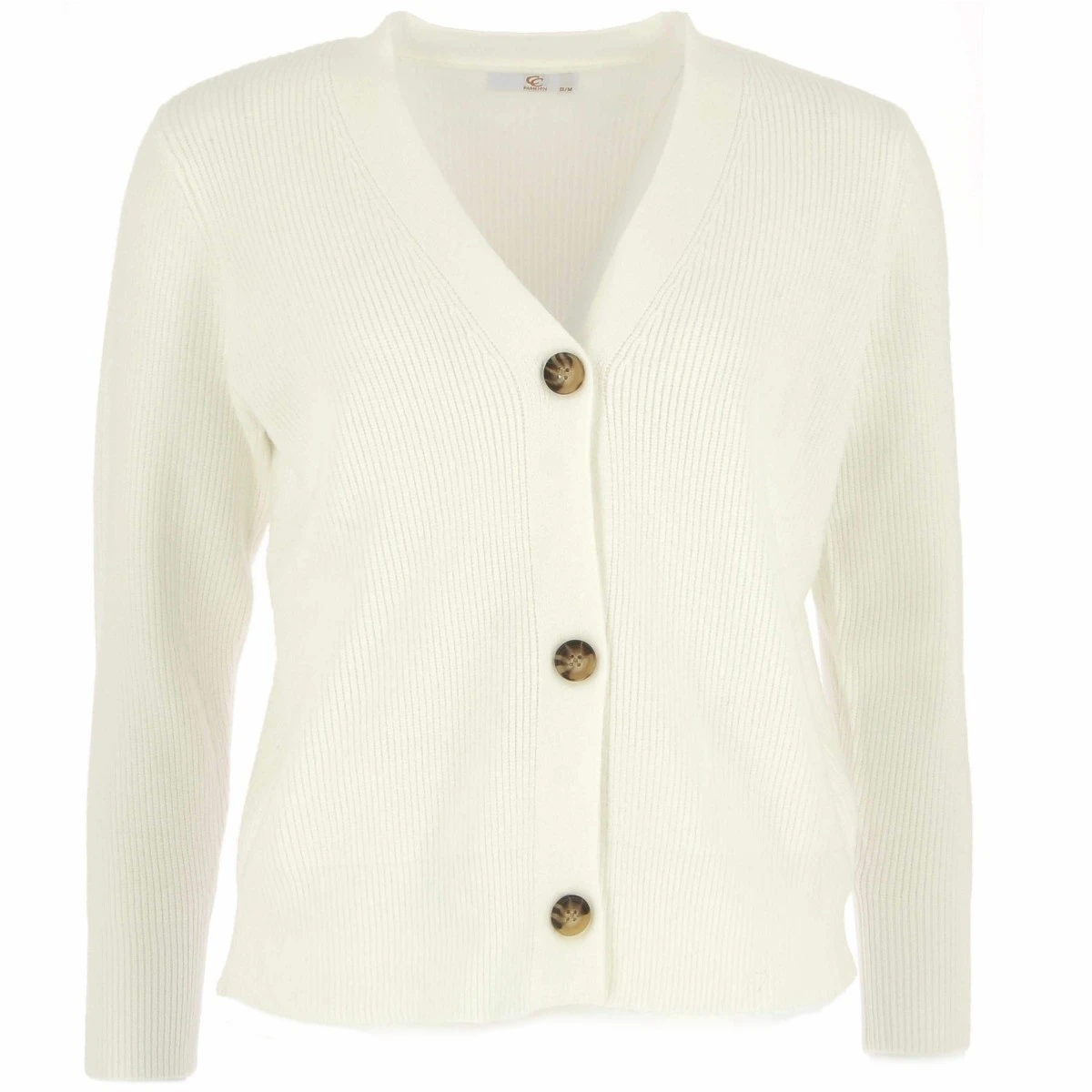 Cardigan femme, modèle Napoli, coloris écru. Col V, boutonné.