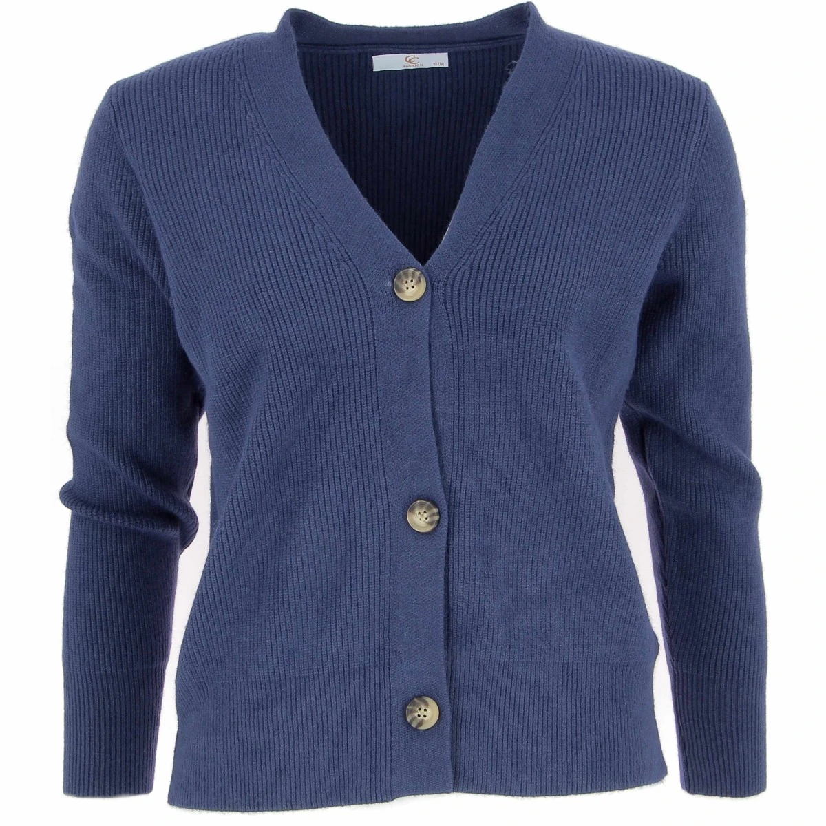 Cardigan femme, modèle Roma, coloris marine. Col V, boutonné.