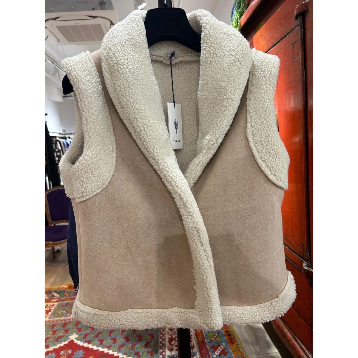 Gilet sherpa façon « peau lainée », coloris beige. Superbe fausse peau lainée, très chaude et douce.