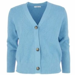 Cardigan femme, modèle Venise, coloris bleu. Col V, boutonné.