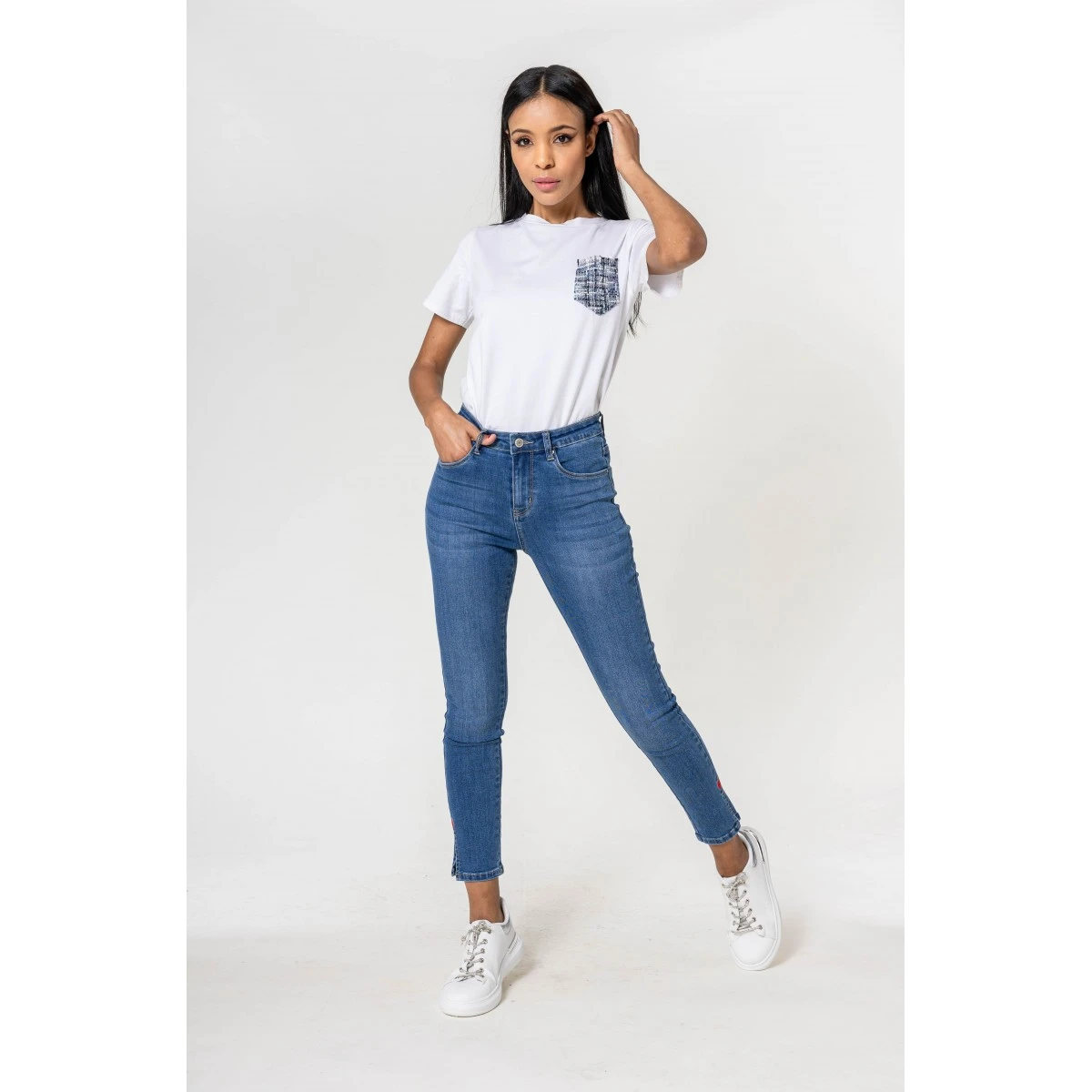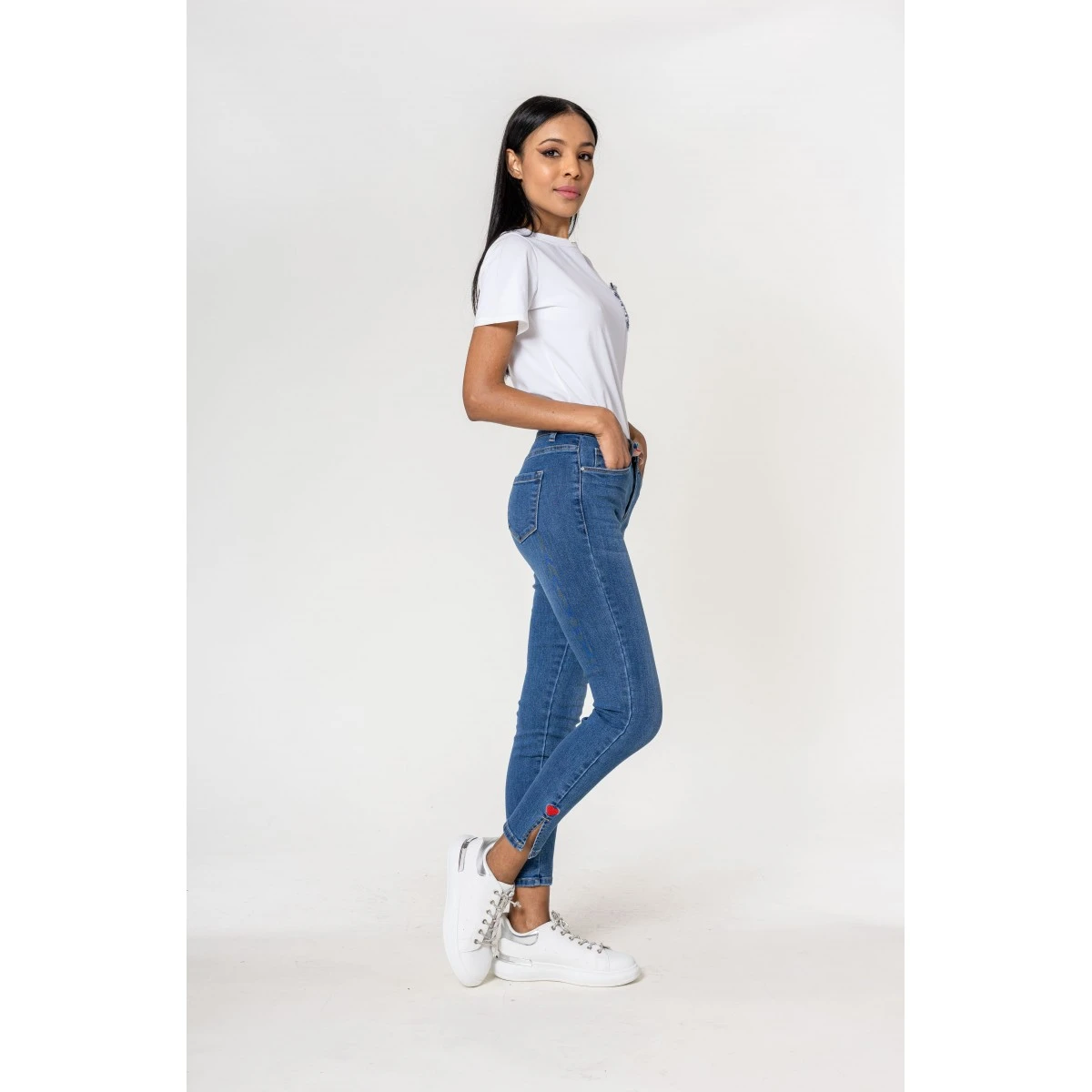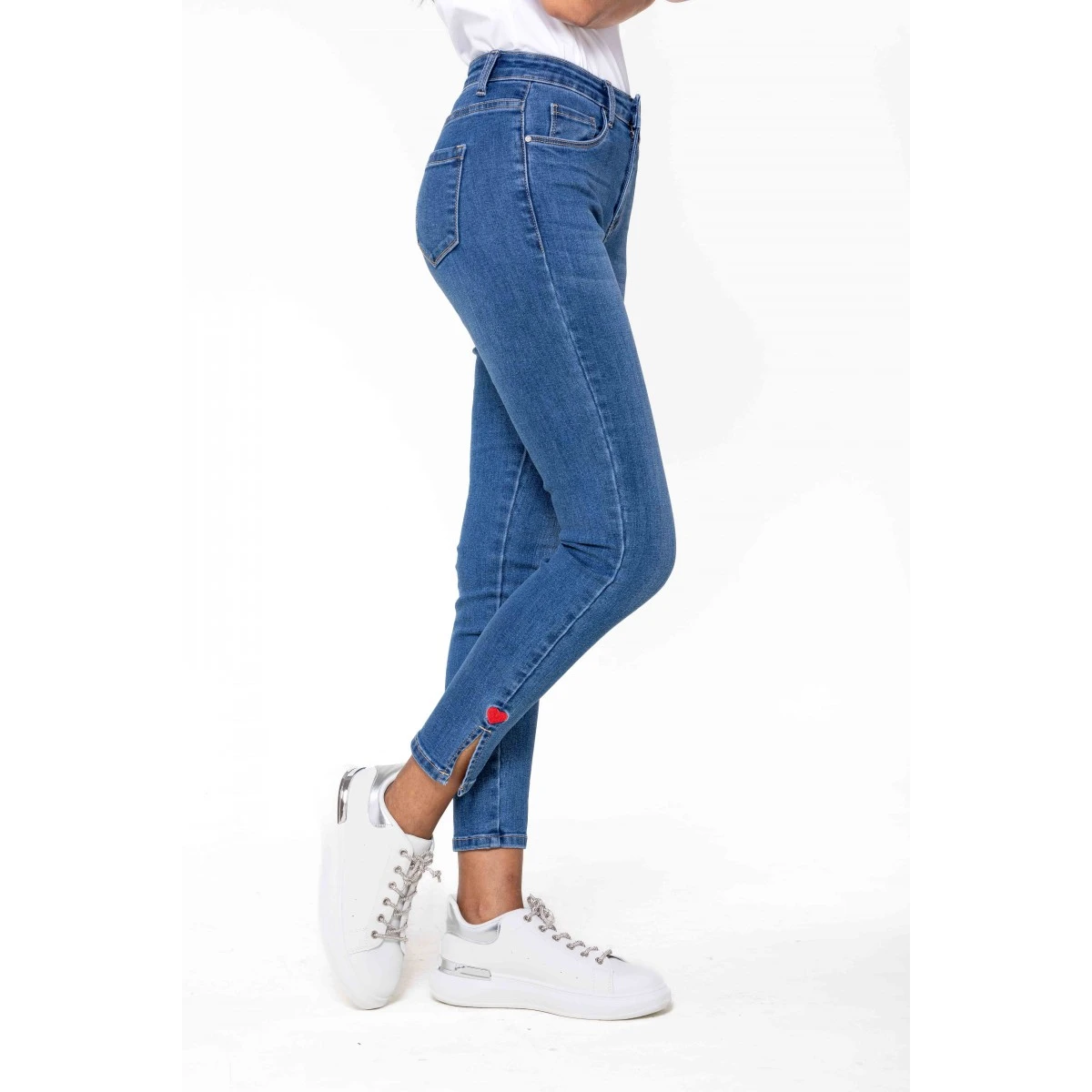 Petite broderie coeur et fente bas extérieur jambe, très mode.