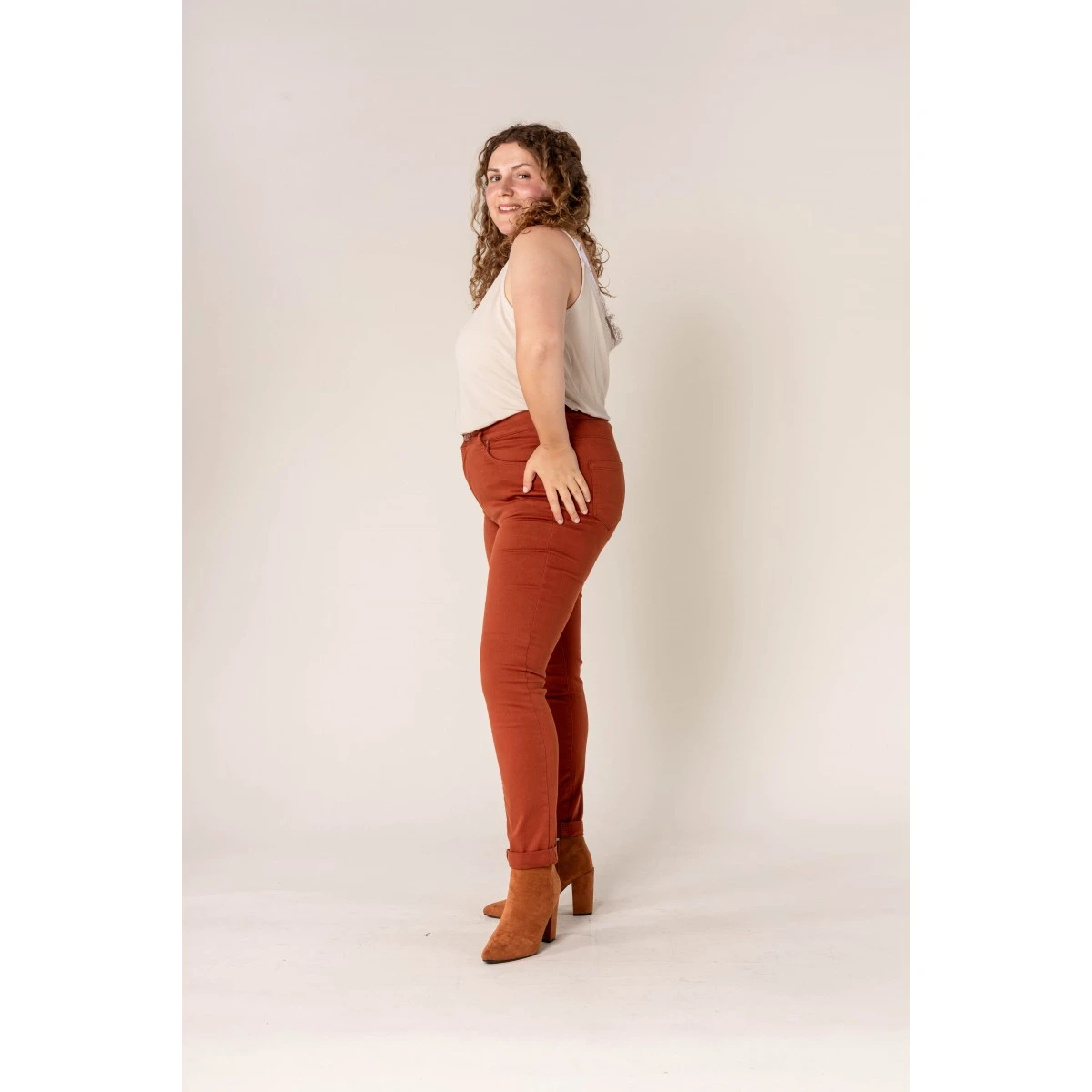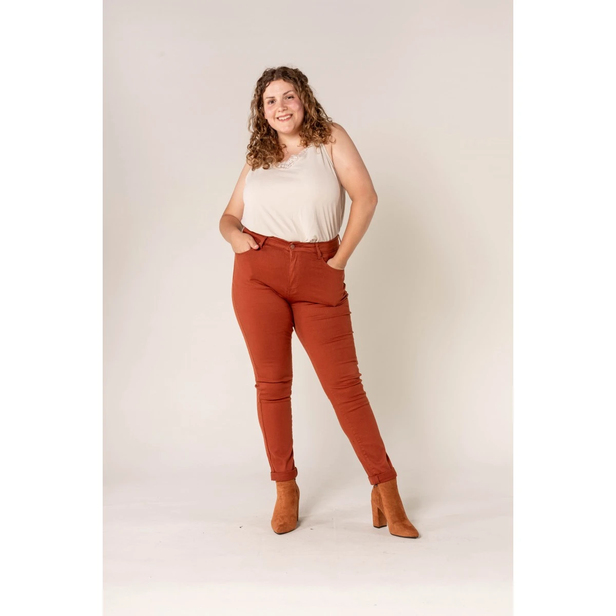 Jean femme stretch Nina Carte, coloris rouille. Taille haute, bouton et fermeture éclair. Les 2% d’Elasthanne assurent un confort extrême, une aisance dans tous vos mouvements. A porter avec ou sans revers, à votre guise.