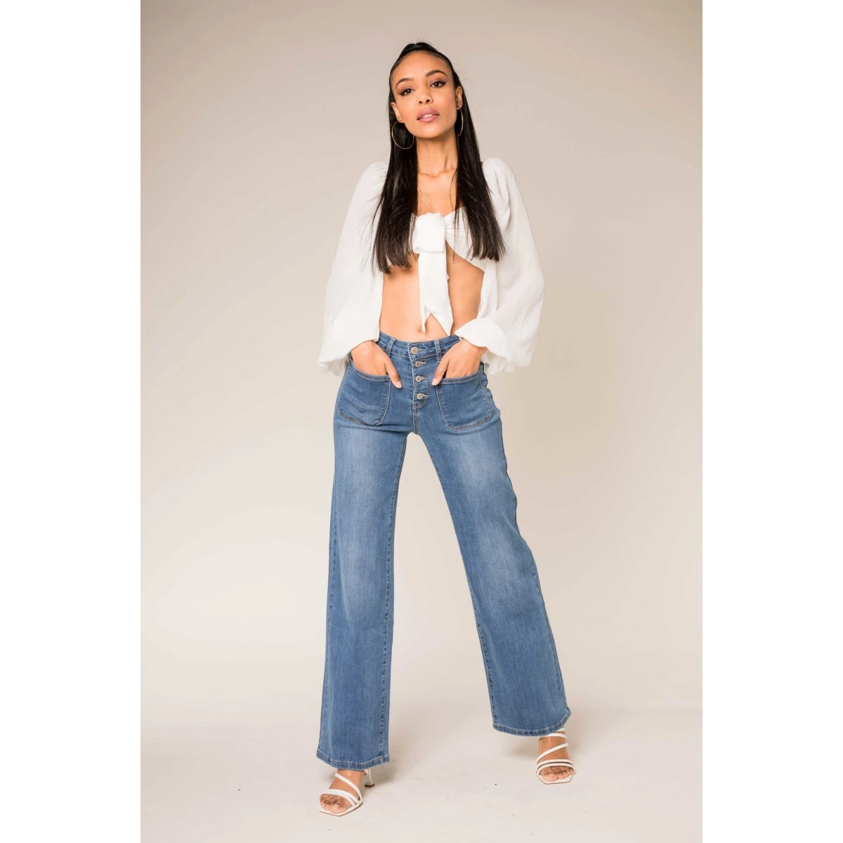 Jean stretch Flare femme Nina Carter bleu clair. Taille haute, fermé par 4 boutons. 2 poches plaquées devant et dos. Les 2% d’Elasthanne assurent un confort extrême, une aisance dans tous vos mouvements.