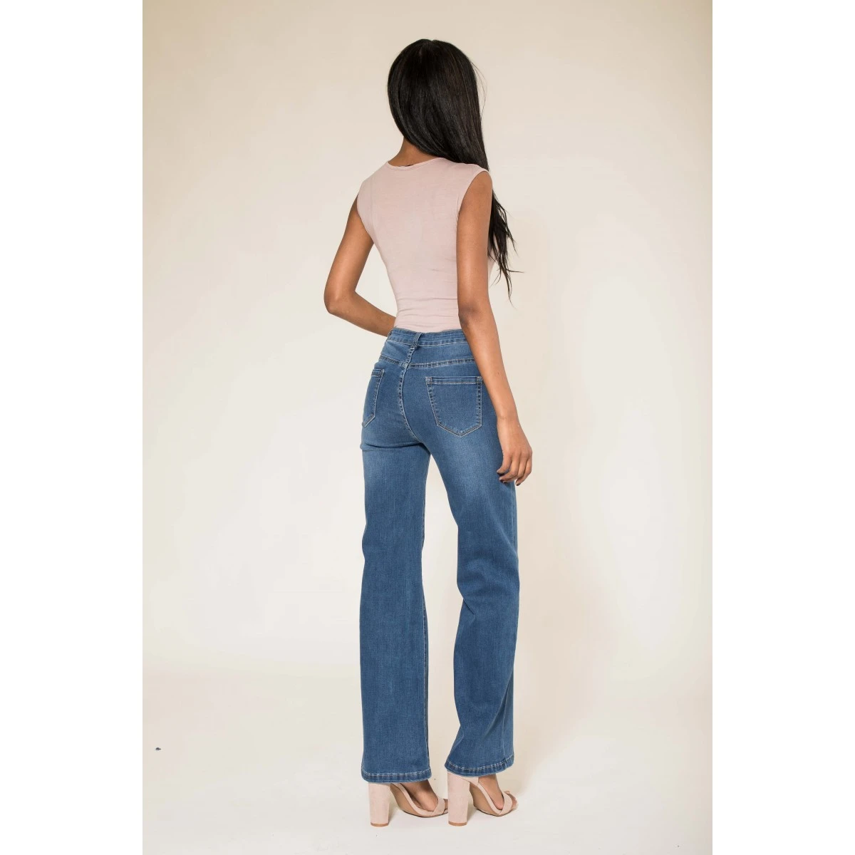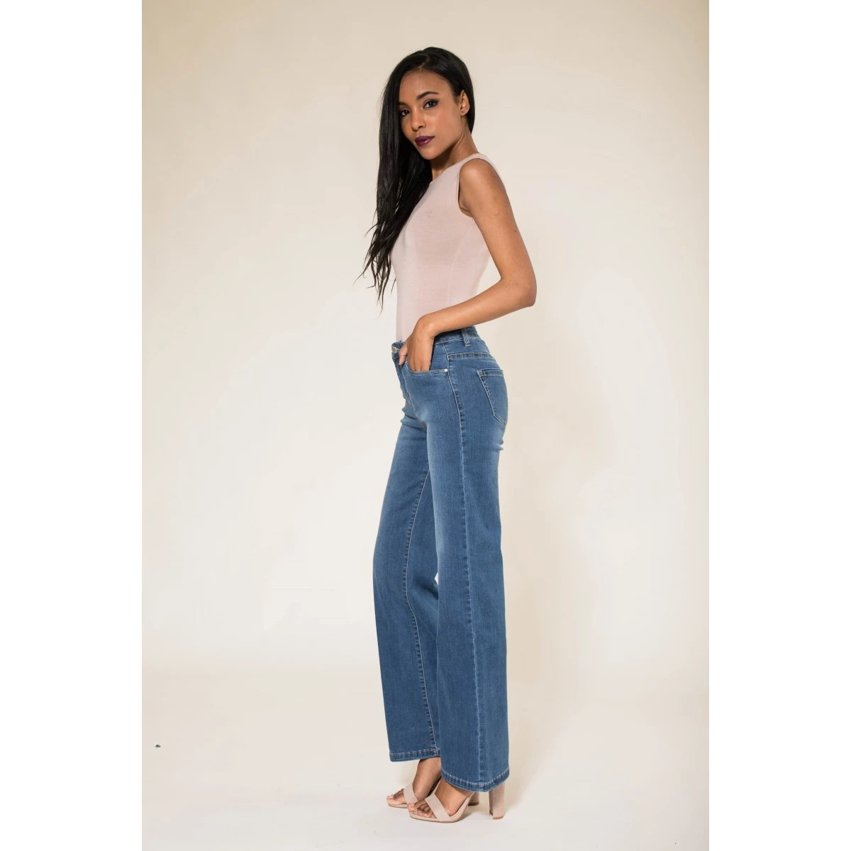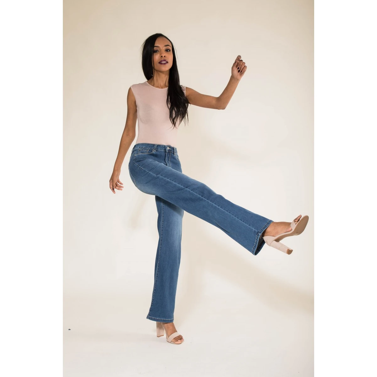 Jean stretch Flare femme Nina Carter, légèrement délavé. Taille haute, fermé par glissière et bouton. 2 poches plaquées au dos. Les 2% d’Elasthanne assurent un confort extrême, une aisance dans tous vos mouvements.