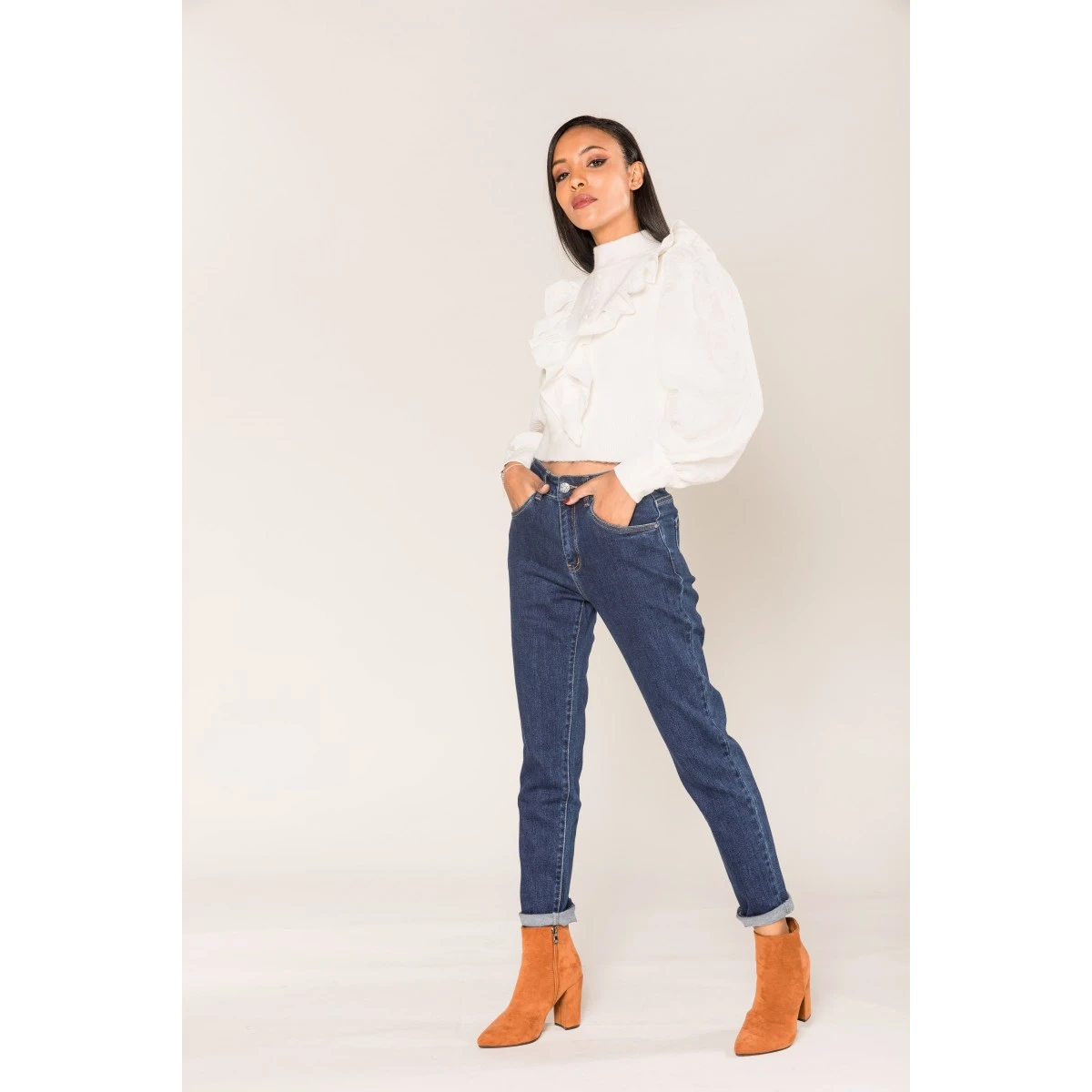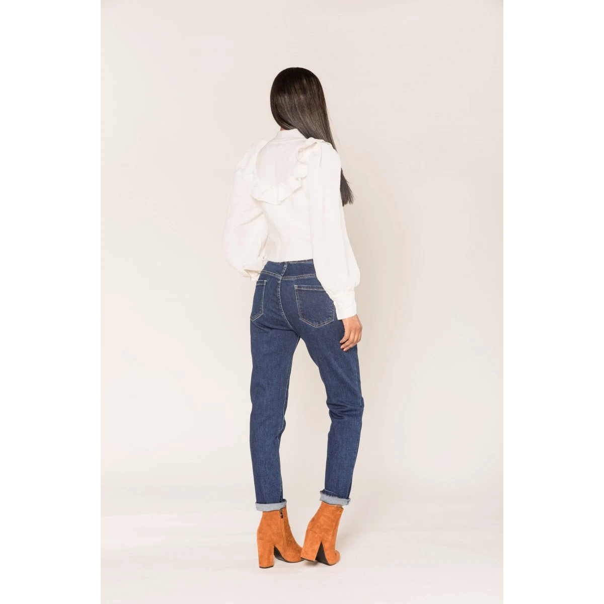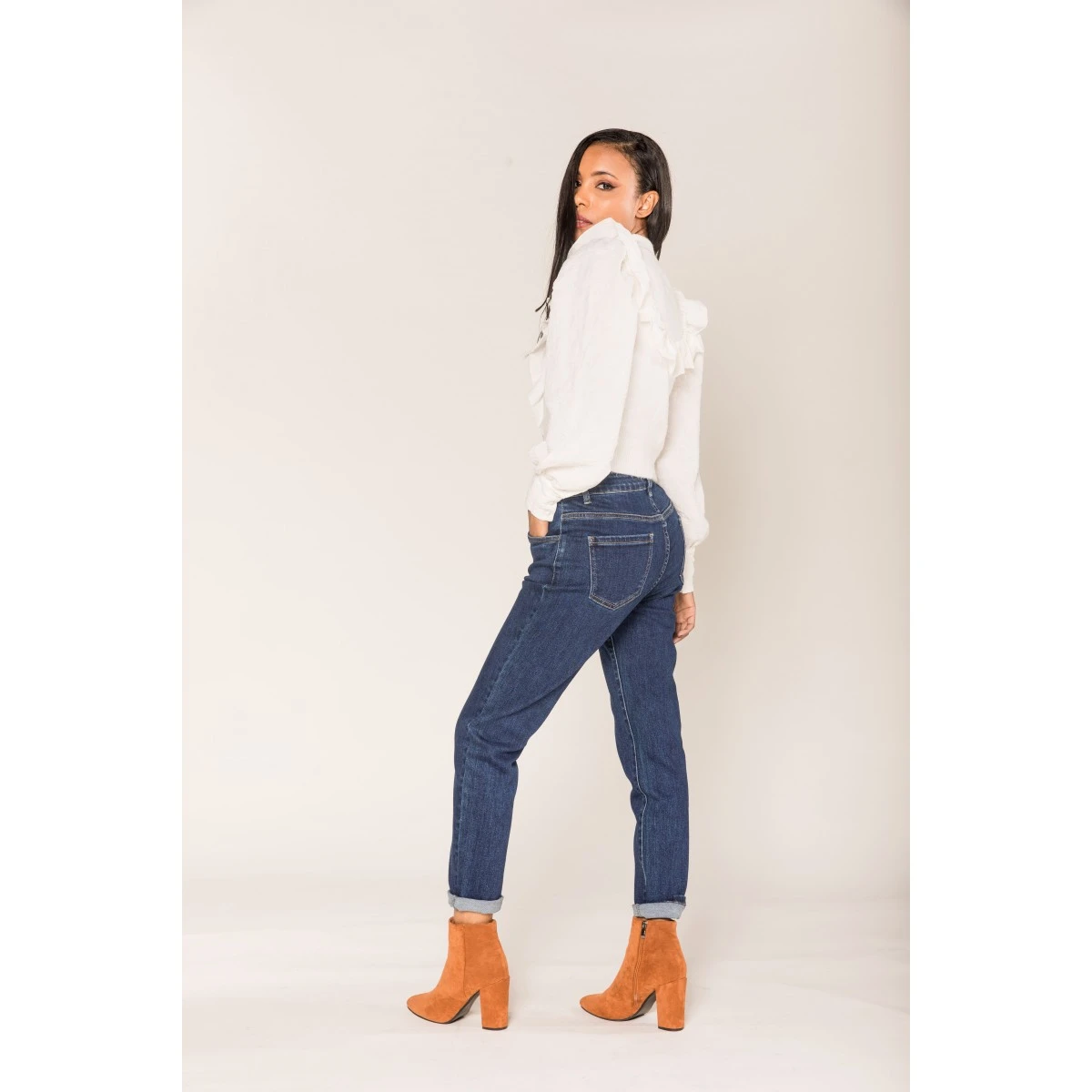 Jean stretch MOM femme Nina Carter, coloris brut uni. Taille haute, bouton et fermeture éclair. Les 2% d’Elasthane assurent un confort extrême, une aisance dans tous vos mouvements. A porter avec ou sans revers, à votre guise.