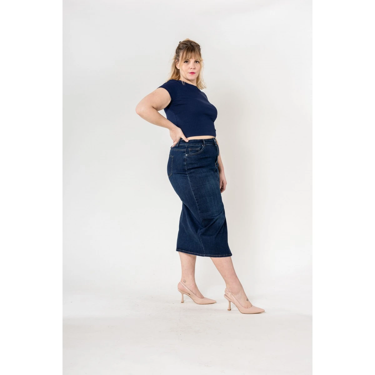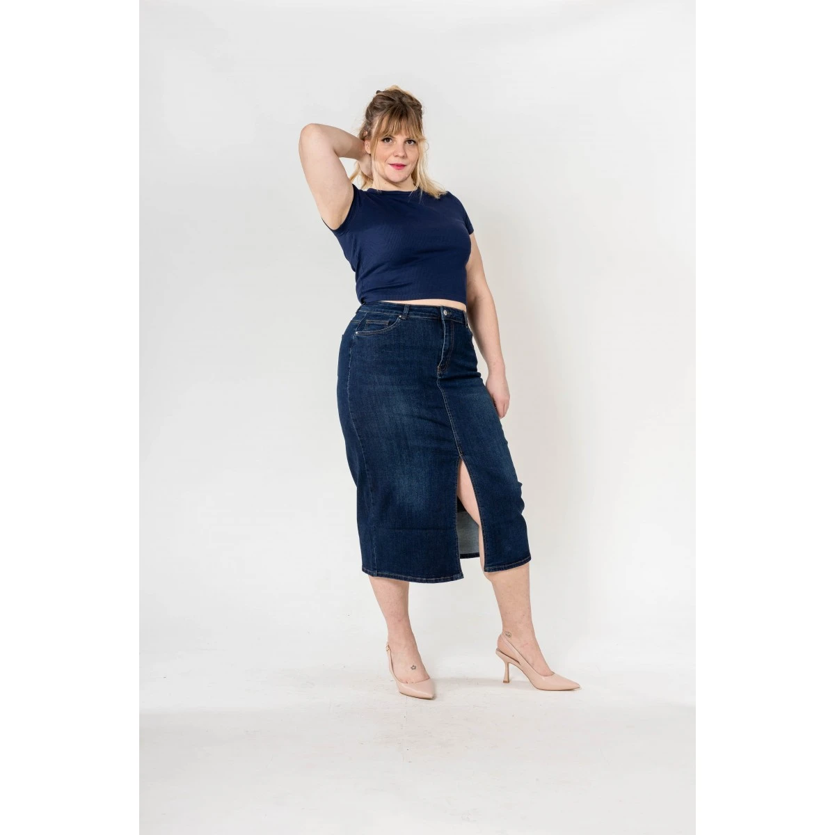 Jupe longue en Jean brut stretch Nina Carter, fente sur le devant. Taille haute, bouton et fermeture éclair. Les 2% d’Elasthane assurent un confort extrême, une aisance dans tous vos mouvements.
