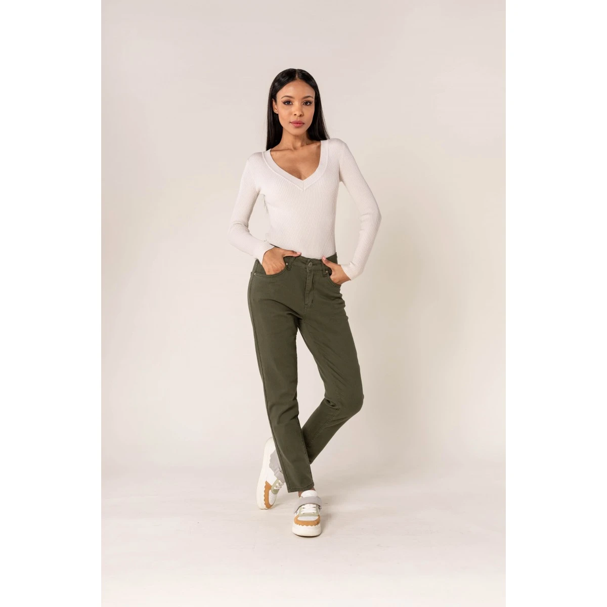 Jean femme stretch Nina Carte, coloris kaki. Taille haute, bouton et fermeture éclair. Les 2% d’Elasthanne assurent un confort extrême, une aisance dans tous vos mouvements. A porter avec ou sans revers, à votre guise.
