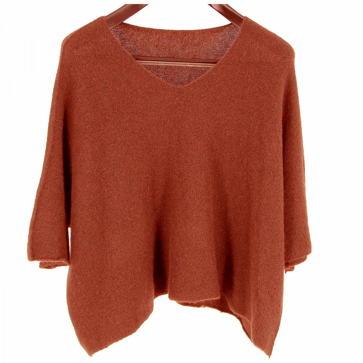 Pull manches 3/4 chauve-souris, coloris brique, col V.