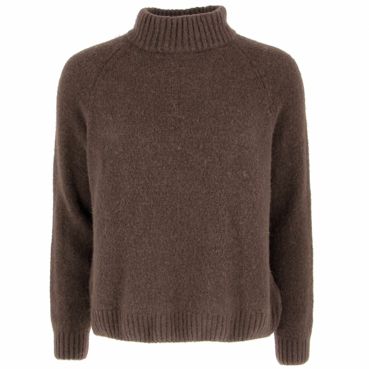 Pull manches raglan longues, coloris marron chocolat, col légèrement montant..