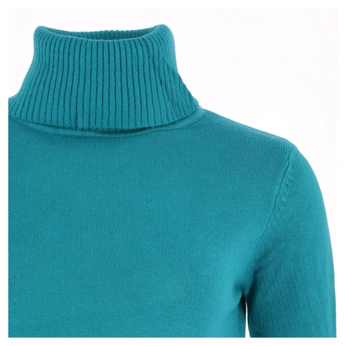 Pull femme col roulé, coloris bleu paon. Une matière très douce et très extensible, une coupe légèrement cintrée à porter aussi bien avec un jean, des leggings ou une jupe.