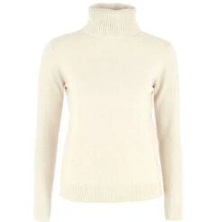Pull femme col roulé, coloris écru. Une matière très douce et très extensible, une coupe légèrement cintrée à porter aussi bien avec un jean, des leggings ou une jupe.