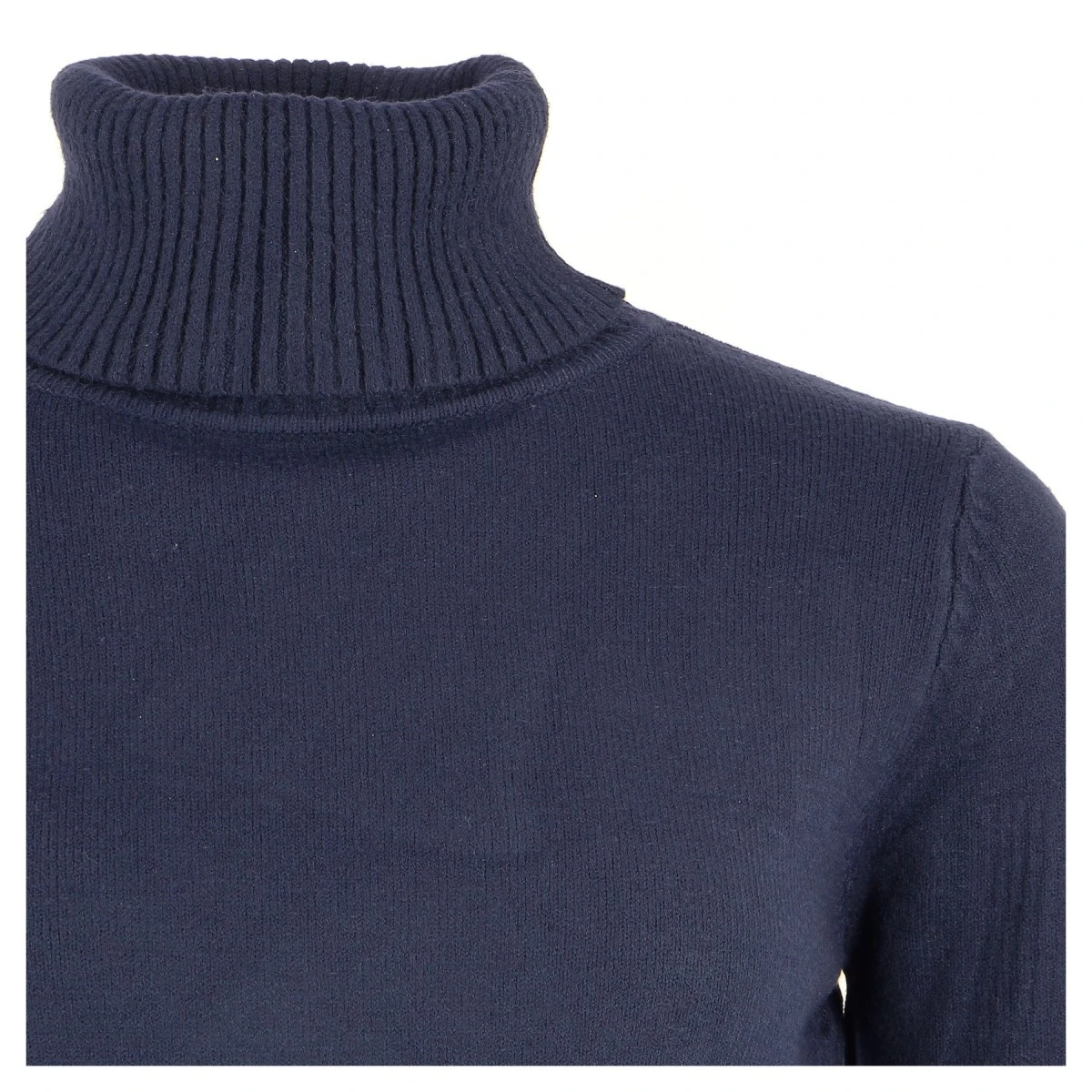 Pull femme col roulé, coloris marine. Une matière très douce et très extensible, une coupe légèrement cintrée à porter aussi bien avec un jean, des leggings ou une jupe.