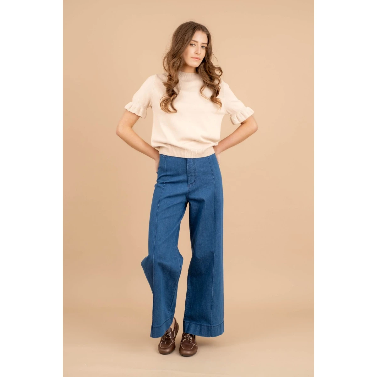 Avec son petit col rond et ses manches courtes agrémentées d’un volant raffiné, il sera le choix parfait pour la demi-saison.