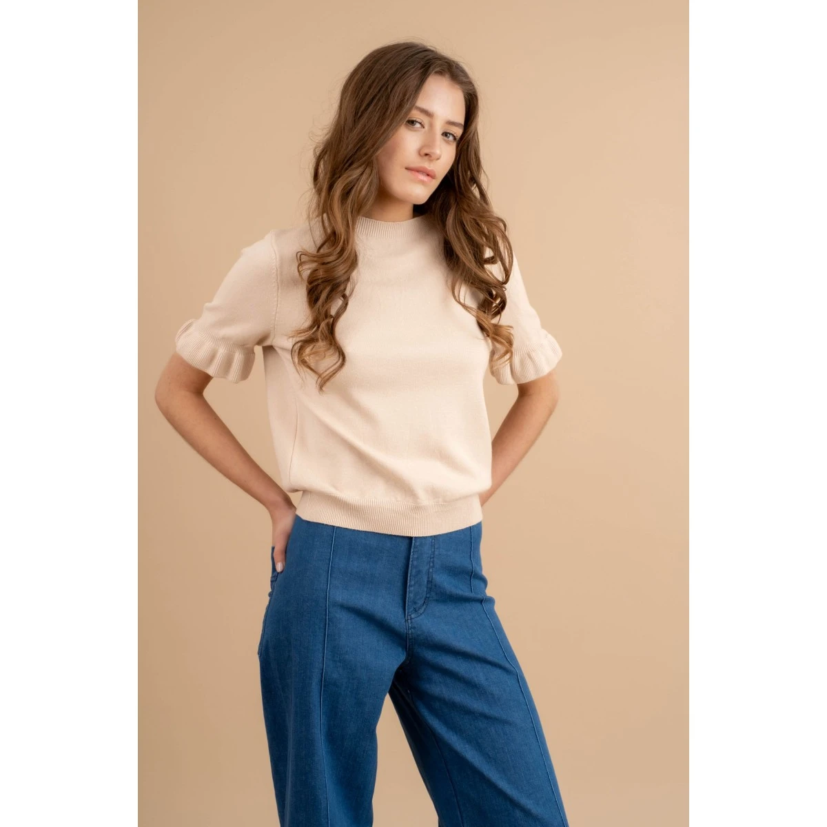 Pull femme manche courtes, dans une teinte crème, douce et apaisante, qui apporte douceur et légèreté.