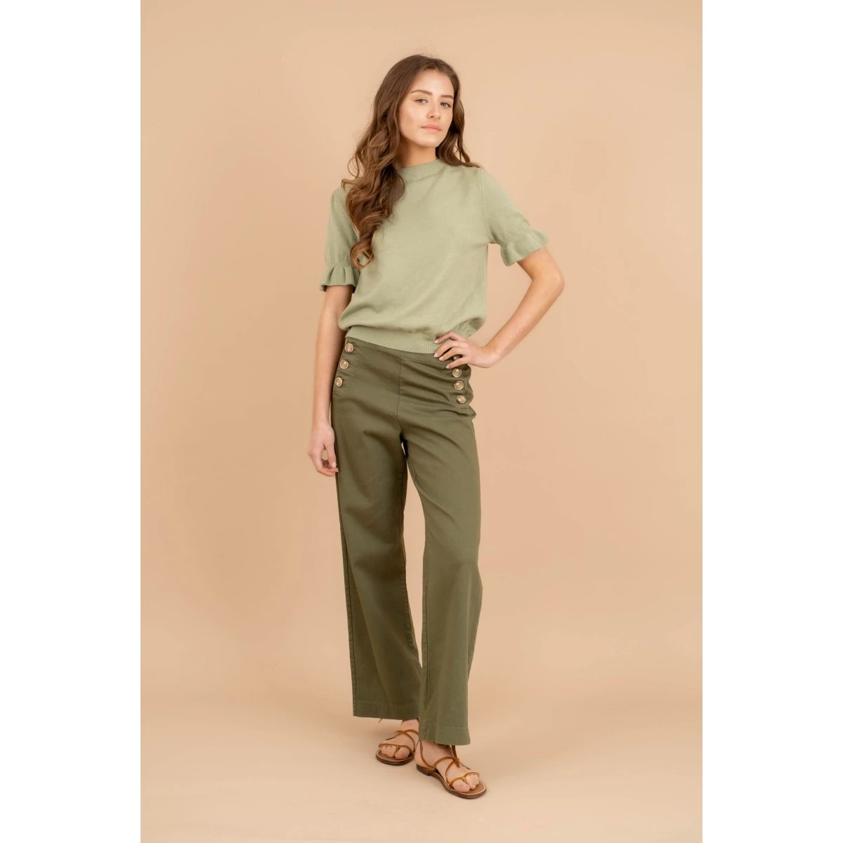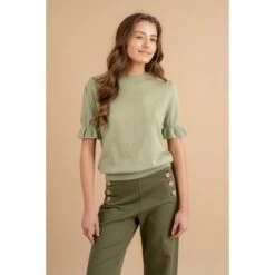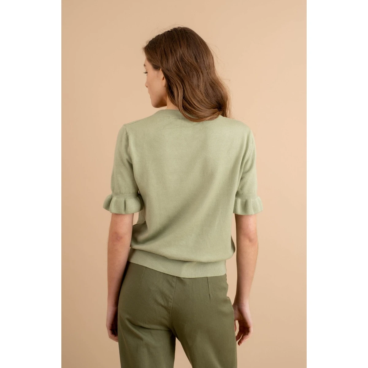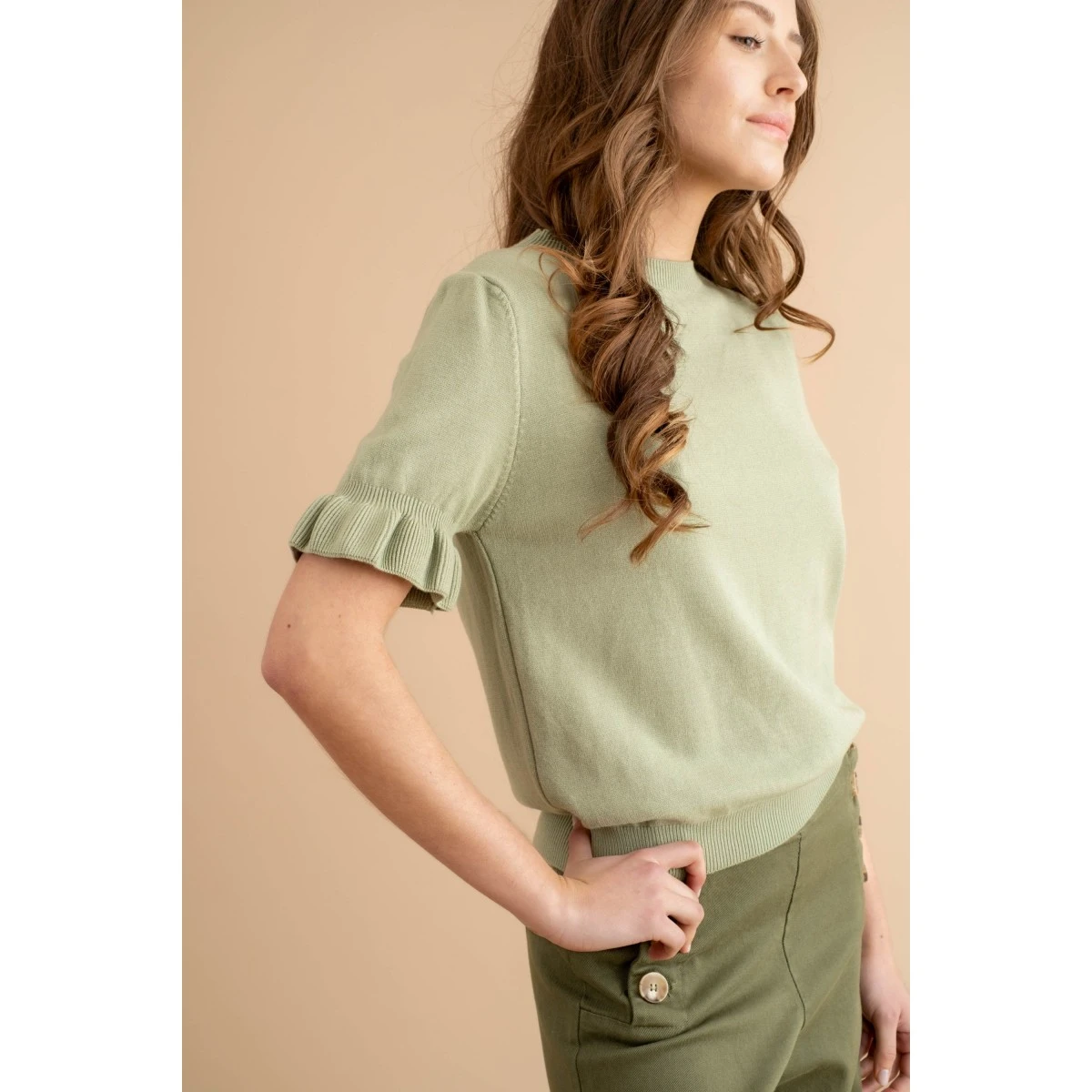 Pull femme manche courtes, dans une teinte vert amande, douce et apaisante, qui apporte douceur et légèreté.