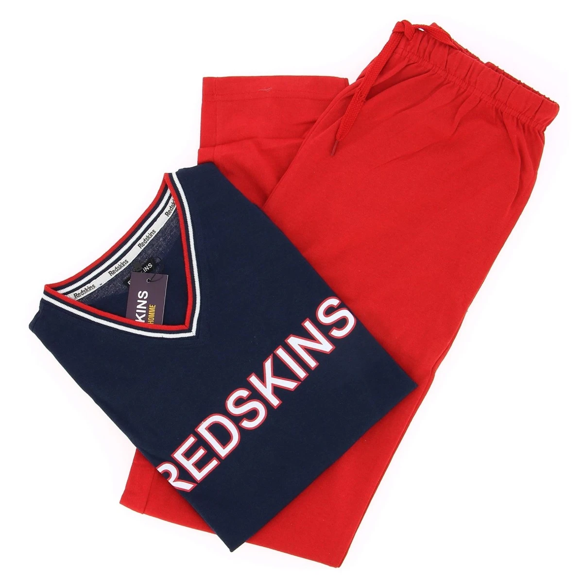 Pyjama REDSKINS homme, coloris marine et pantalon rouge ; pour vos soirées « cocooning ».