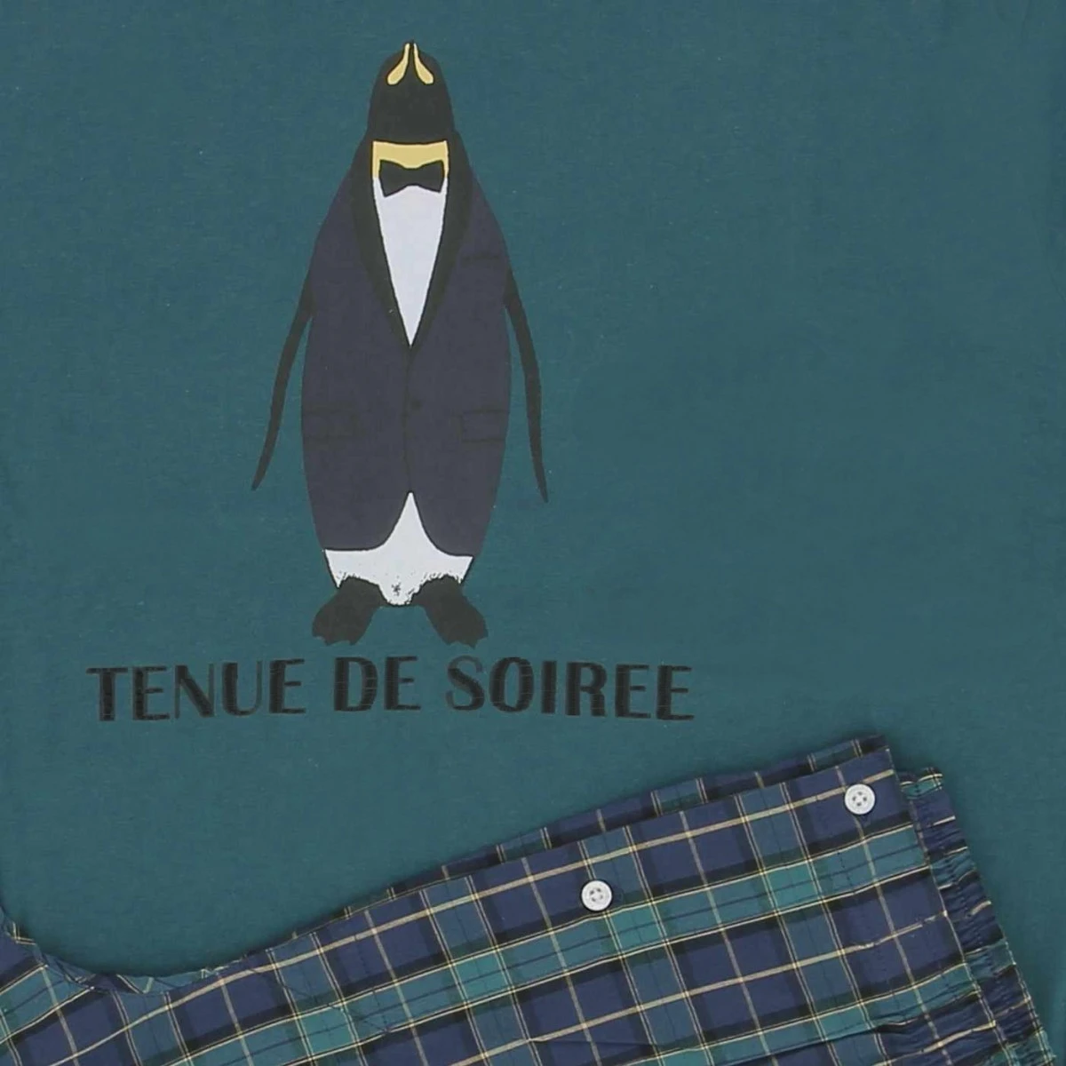 Pyjama short ARTHUR homme, tee-shirt col rond, coloris vert foncé. Short en coton écossais.