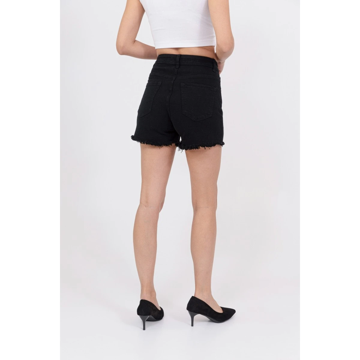 Short en Jean noir Nina Carter. Taille haute, bouton et fermeture éclair. Les 2% d’Elasthane assurent un confort extrême, une aisance dans tous vos mouvements.