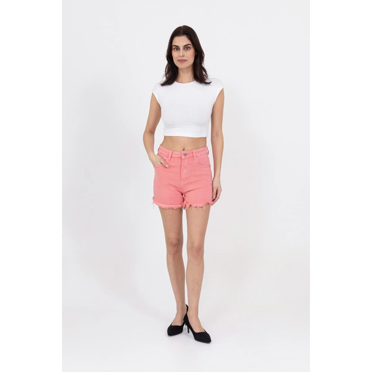 Short en Jean rose Nina Carter. Taille haute, bouton et fermeture éclair. Les 2% d’Elasthane assurent un confort extrême, une aisance dans tous vos mouvements.