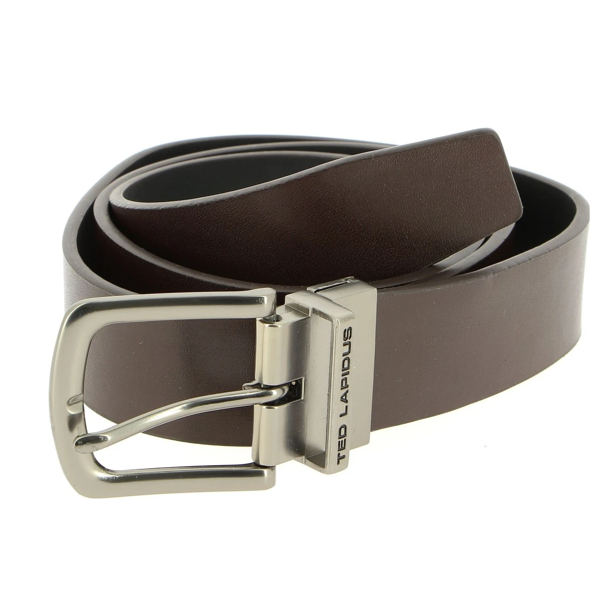 Découvrez la gamme de ceinture réversible TED LAPIDUS, coloris marron / noir, en 100% cuir. Largeur 4cm et longueur réglable à votre convenance (voir notice explicative)