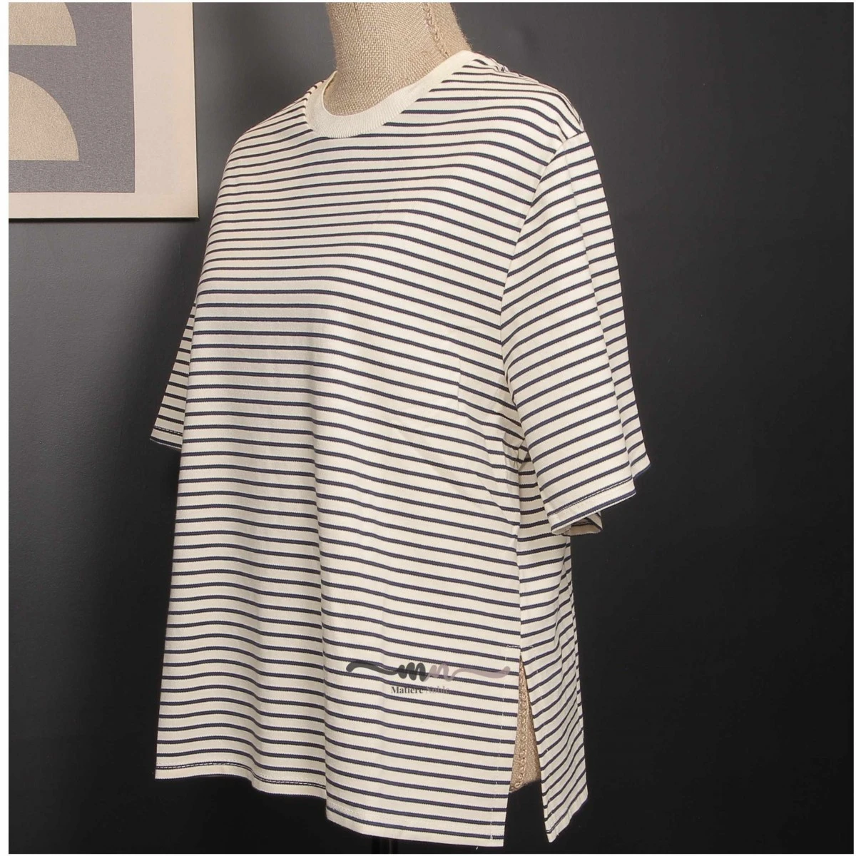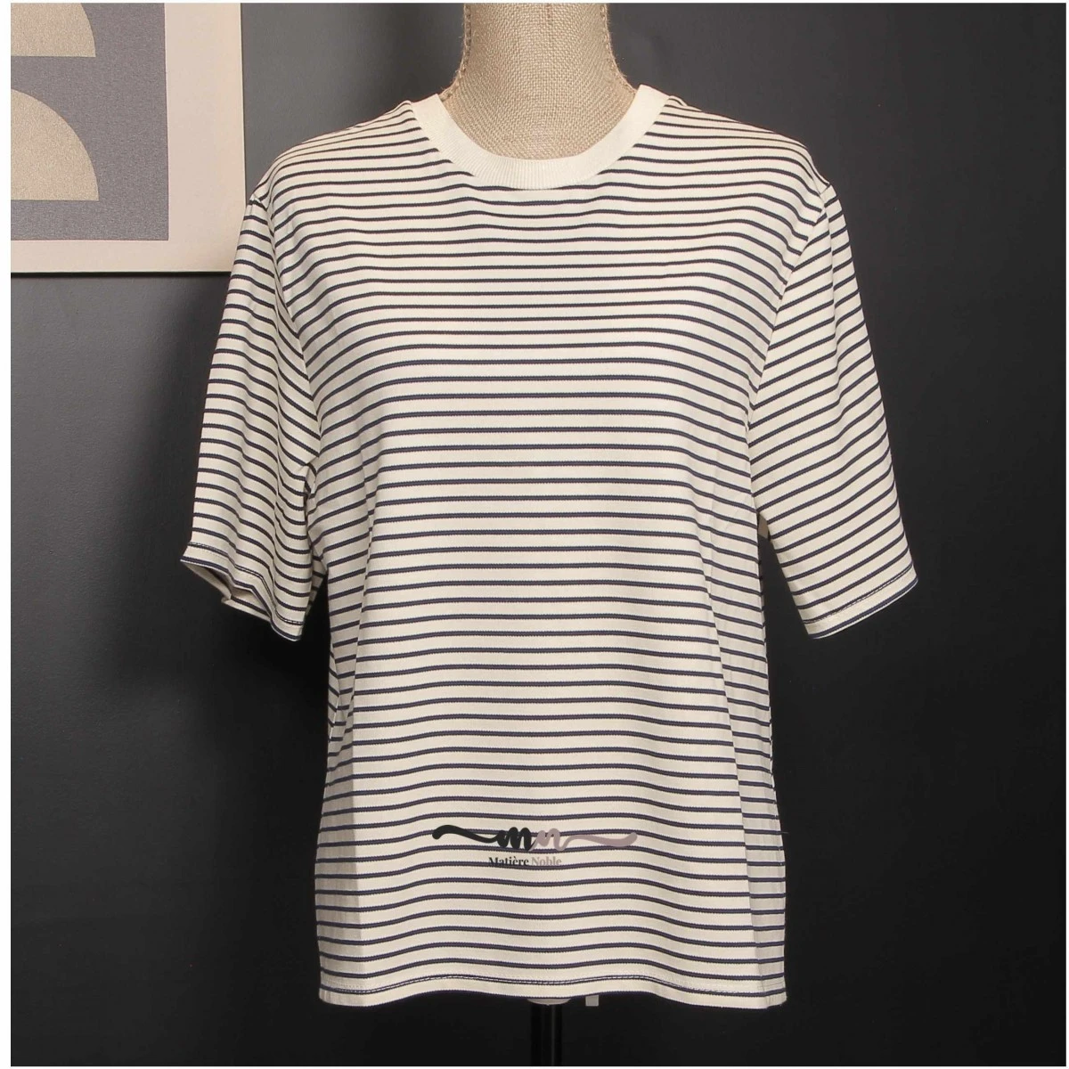 Tee-shirt rayé femme, coloris écru / marine. Une jolie forme légèrement ample avec fentes sur les côtés pour une touche mode.