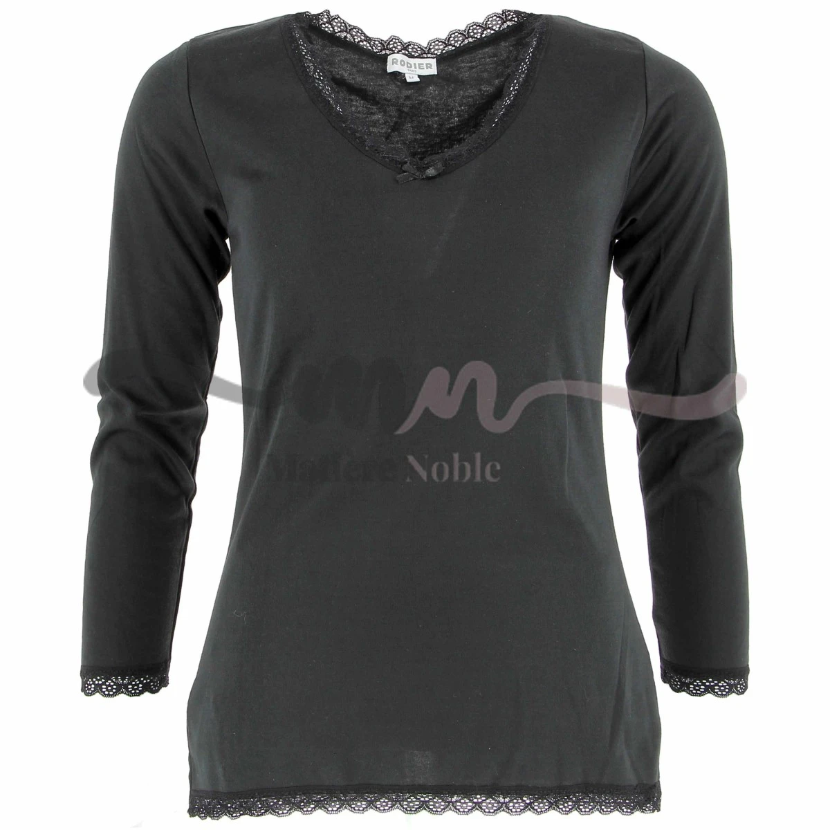 Tee-shirt chaud RODIER, manches longues, coloris noir, en interlock, très confortable, il vous assurera une chaleur agréable associé à un jean ou pantalon par exemple