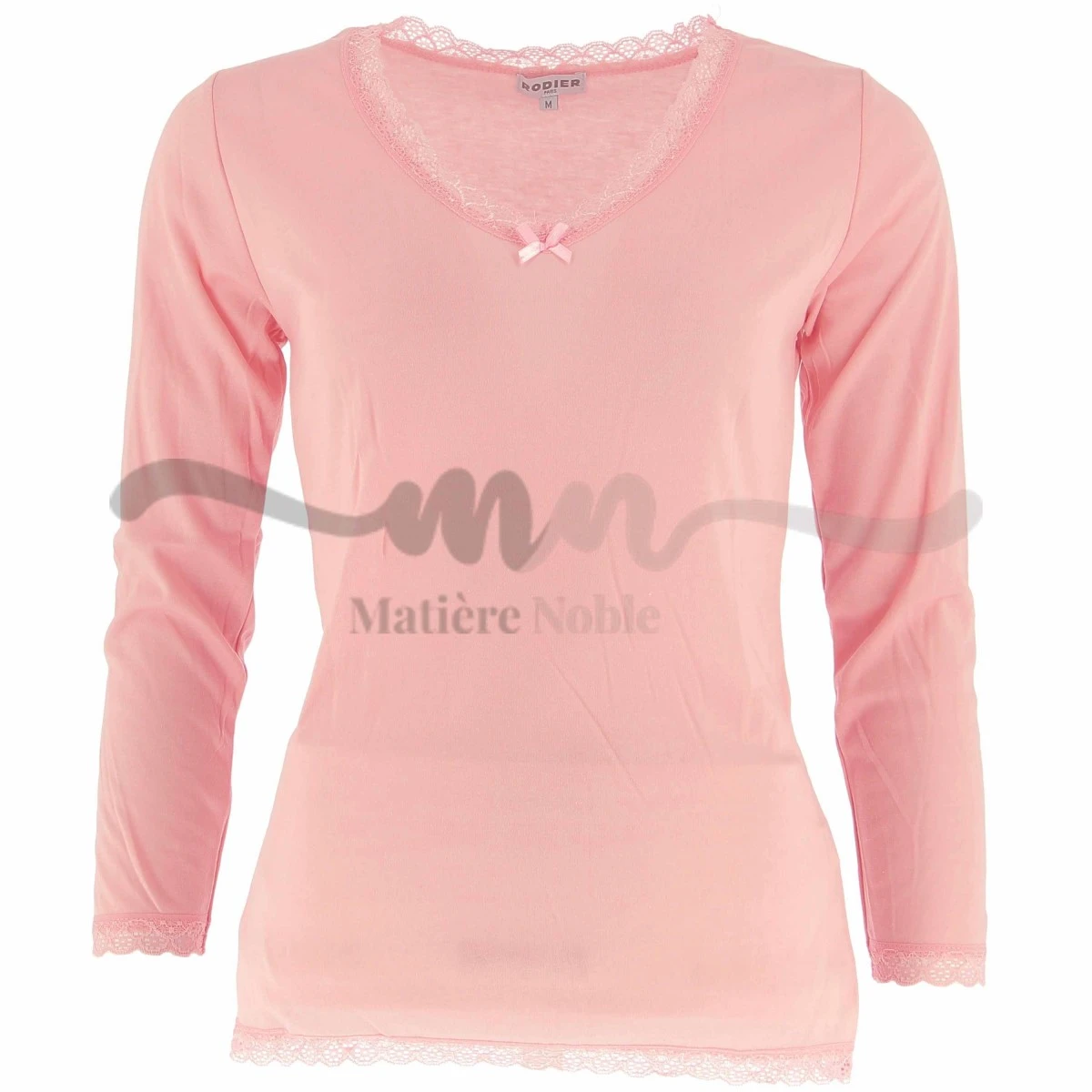 Tee-shirt chaud RODIER, manches longues, coloris rose, en interlock, très confortable, il vous assurera une chaleur agréable, associé à une jean ou pantalon.