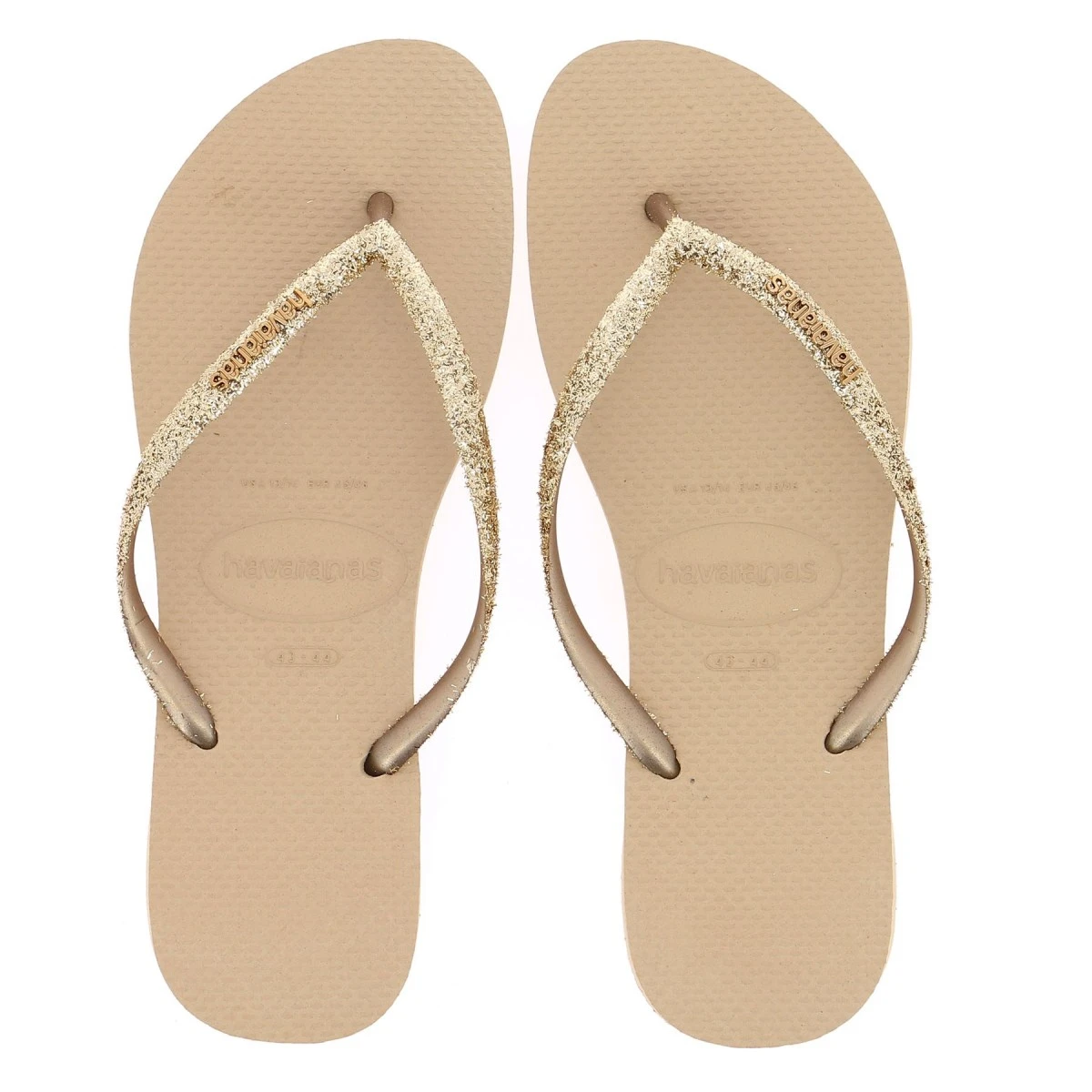 La tong Havaianas mixte Sand grey Slim Glitter , toujours aussi légère, très confortable avec sa semelle moelleuse ; fabriquée au Brésil, elle est en 100% caoutchouc.