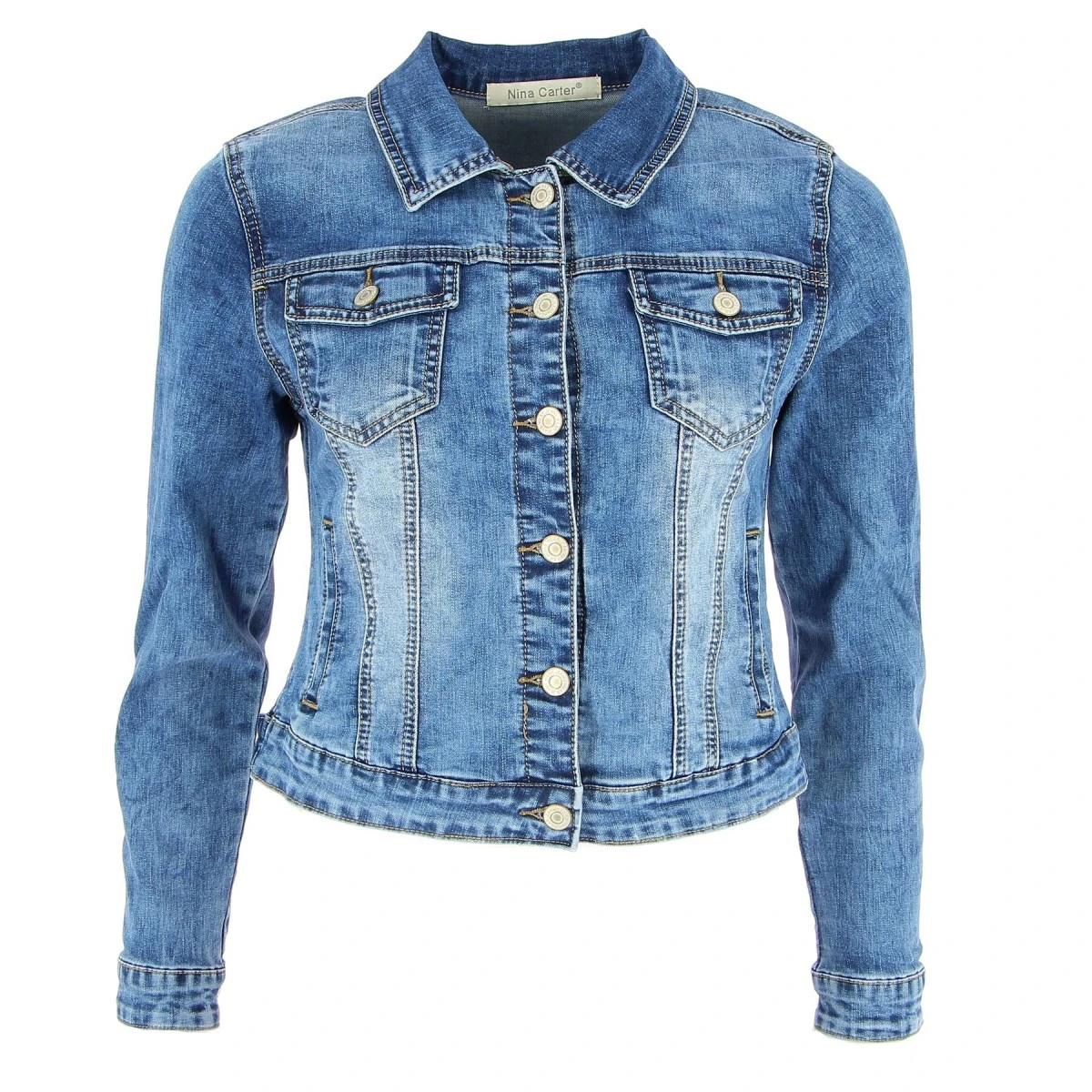Col chemise et boutons en métal. 2 poches poitrine avec rabat boutonné et 2 poches latérales. En total look jean ou porté sur une robe longue ou courte, il fera son effet en toutes saisons. Sa matière stretch assure un confort parfait.